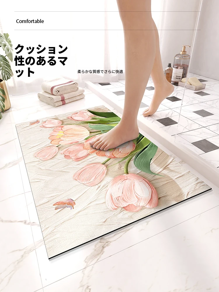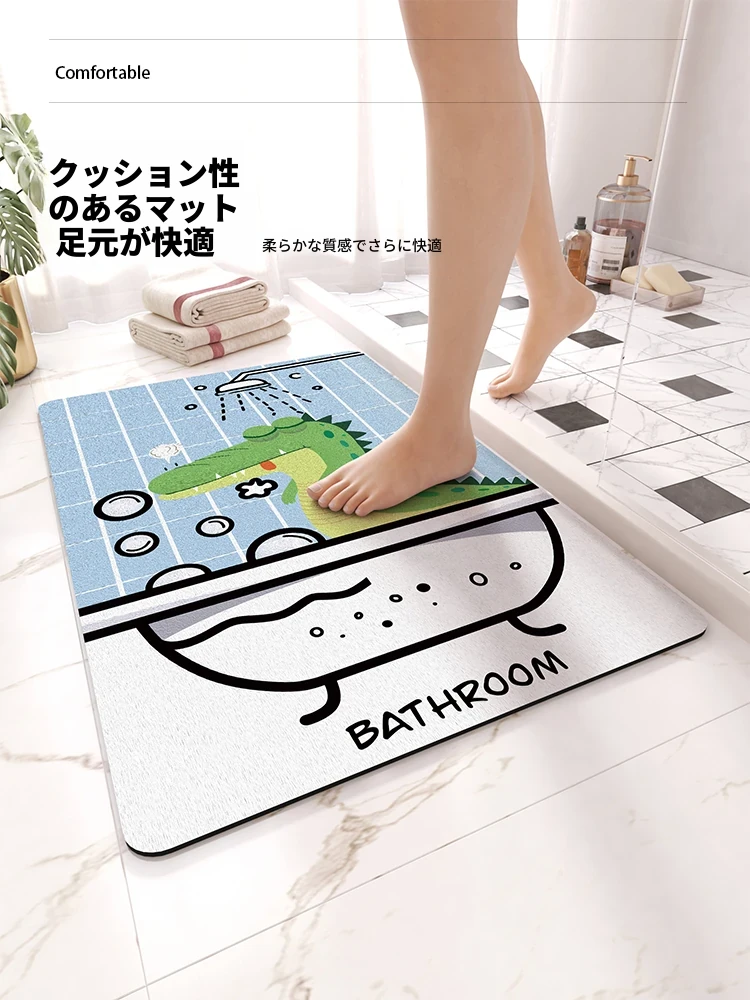 メイシダ速乾バスルーム吸水マット 滑り止め付き キャラクター動物デザイン 家庭用トイレマット 転倒防止 効率的に水分を吸収し、可愛らしいデザインでお子様にも安心!