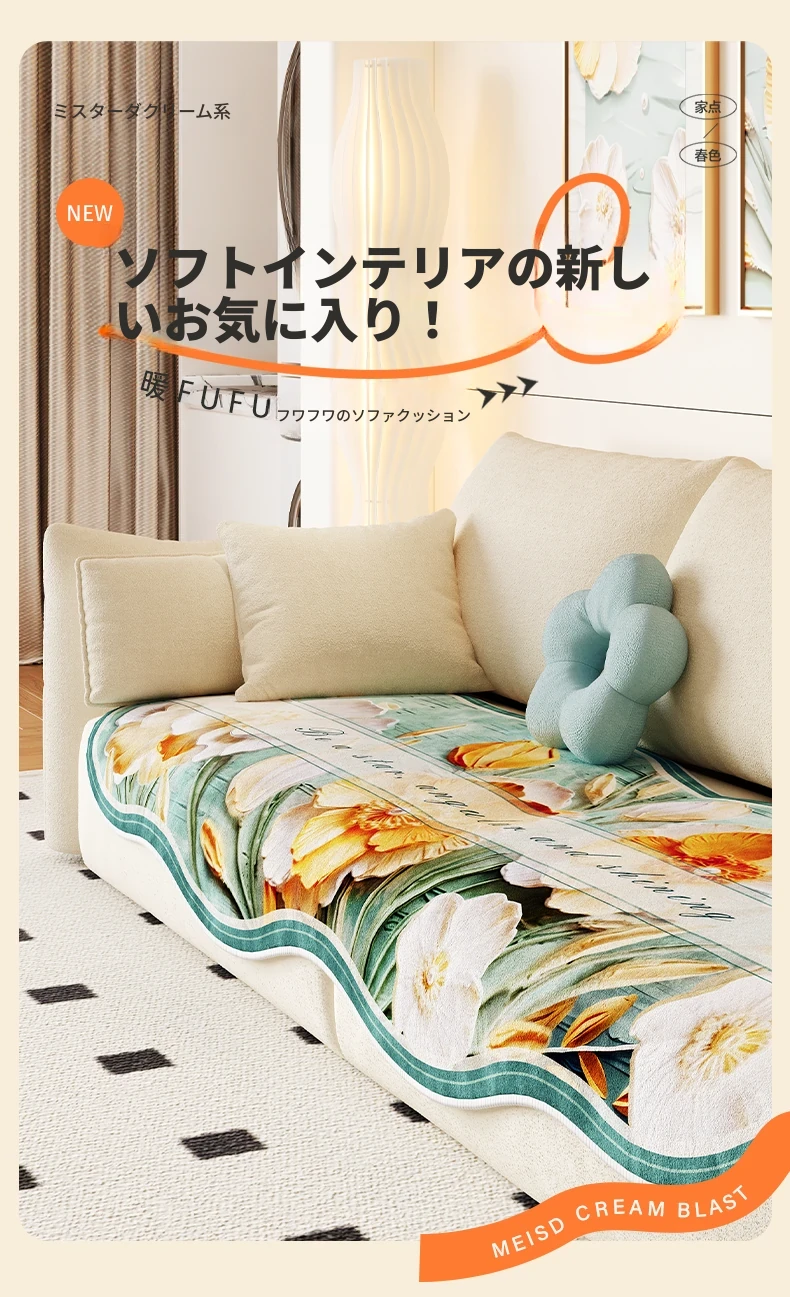 美世达春の息吹ソファクッション新作2024年版!四季通用のフワフワ生地で、滑り止め機能付きの高級クッション。お部屋を華やかに彩り、快適な座り心地を提供します!