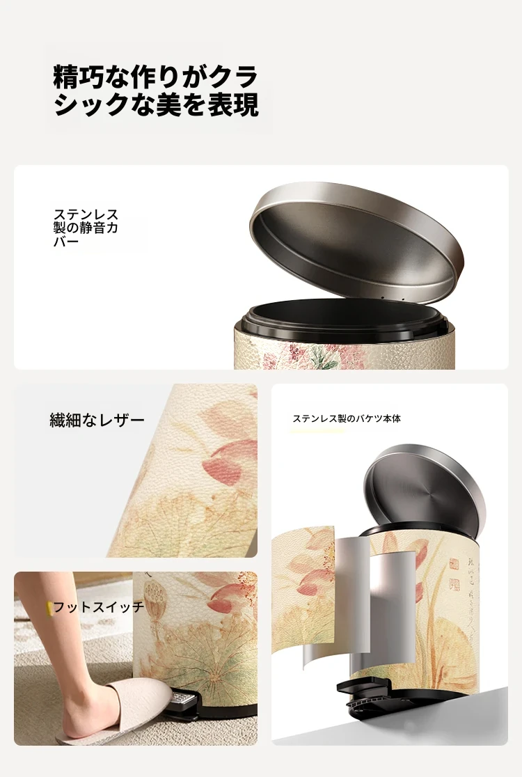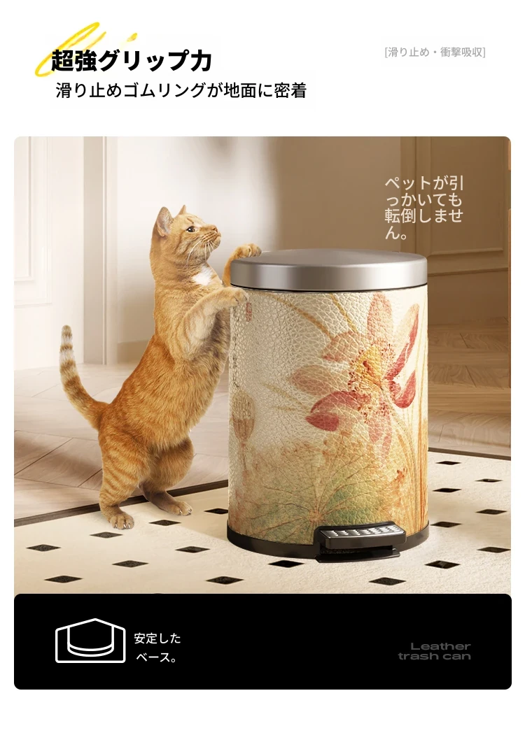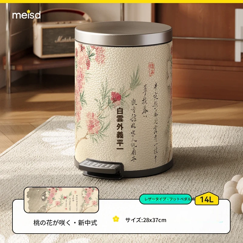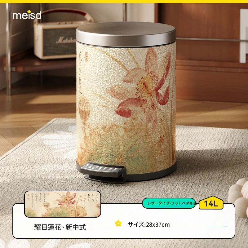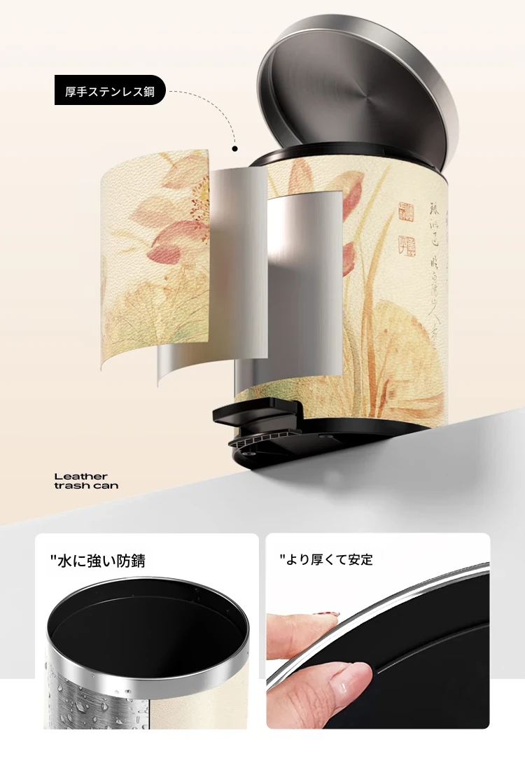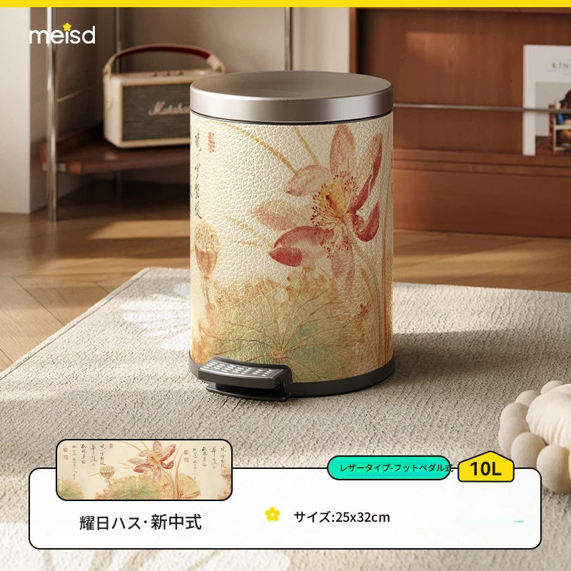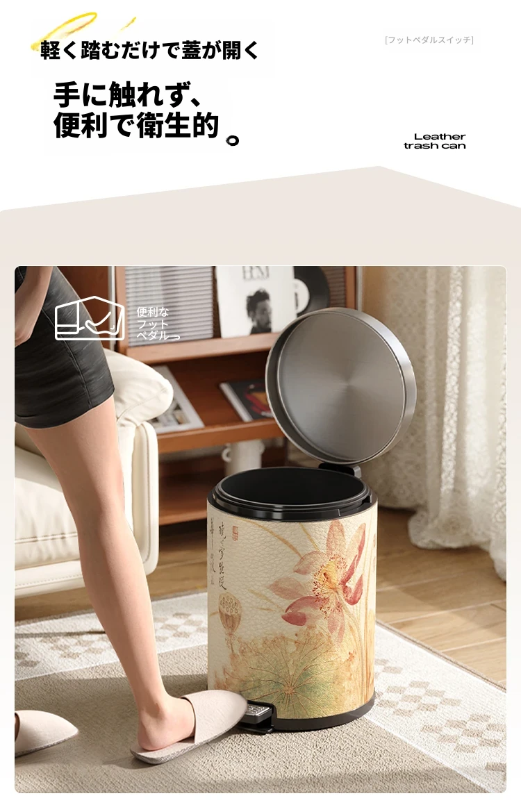 美世达ステンレススチールレザーゴミ箱 - 2025年新作!おしゃれなミッドセンチュリーデザイン、リビングやバスルームに最適な大容量フットペダル式。手間いらずでスタイリッシュな空間を演出!
