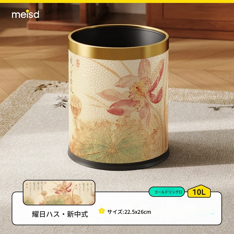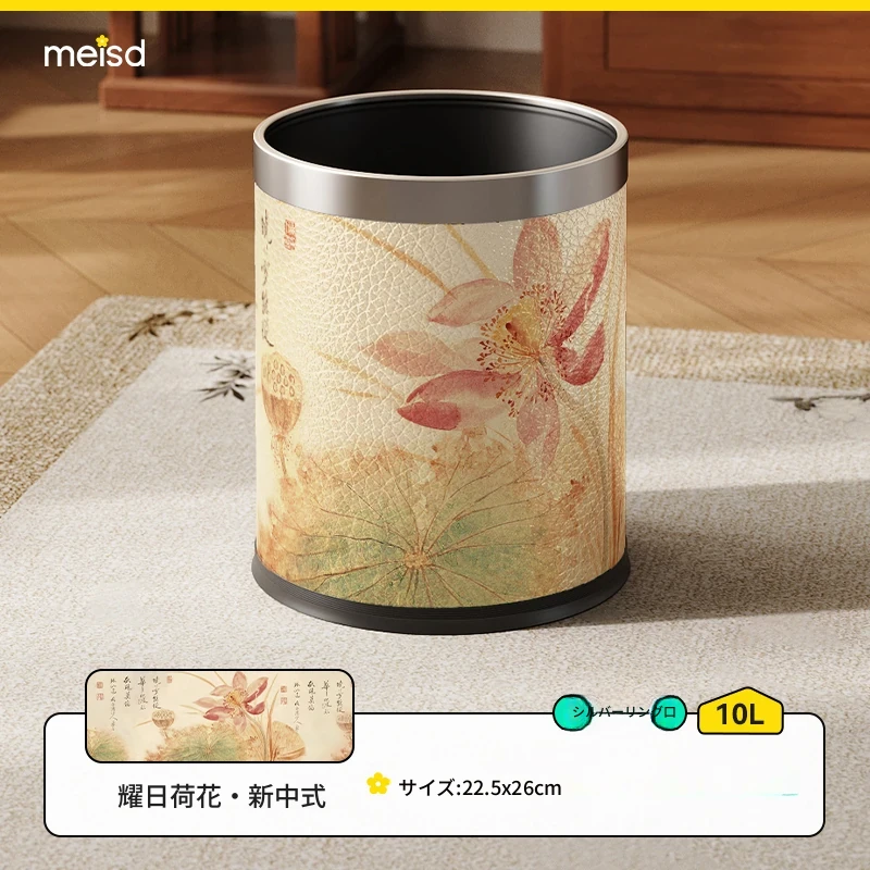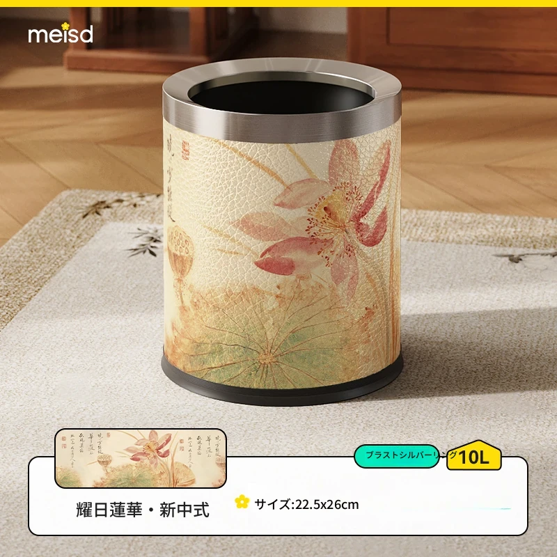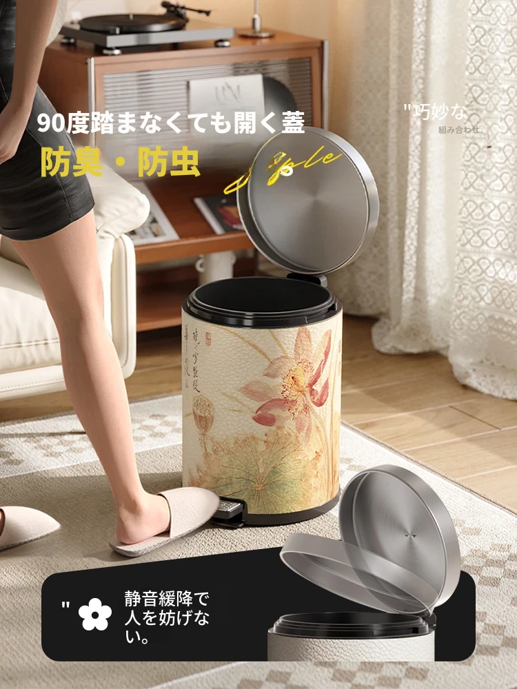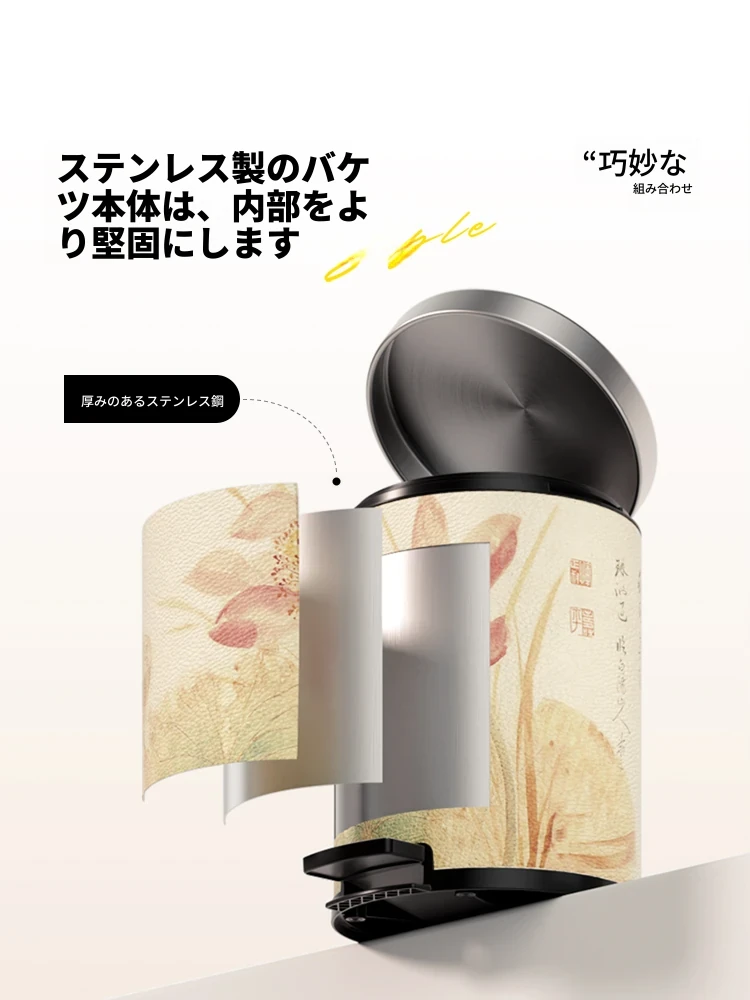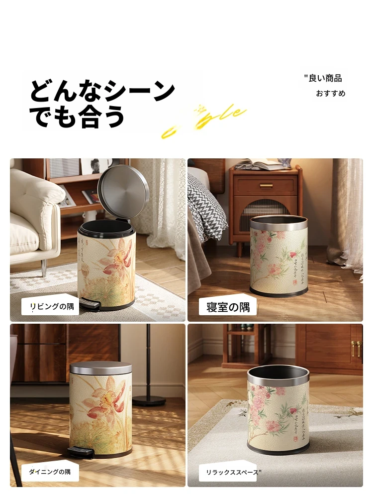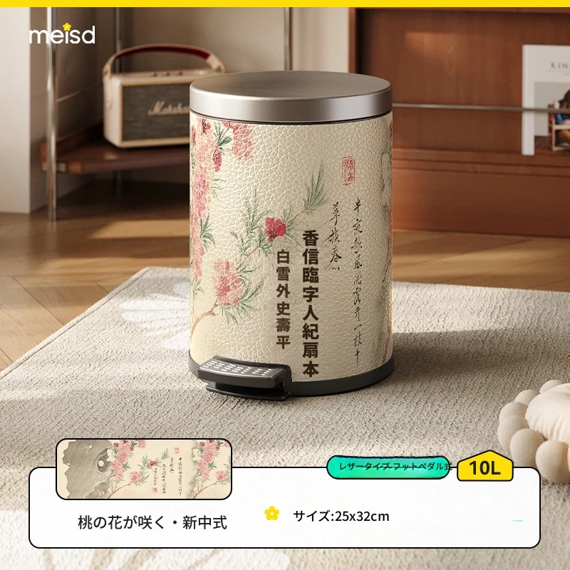 美世达ステンレススチールレザーゴミ箱 - 2025年新作!おしゃれなミッドセンチュリーデザイン、リビングやバスルームに最適な大容量フットペダル式。手間いらずでスタイリッシュな空間を演出!