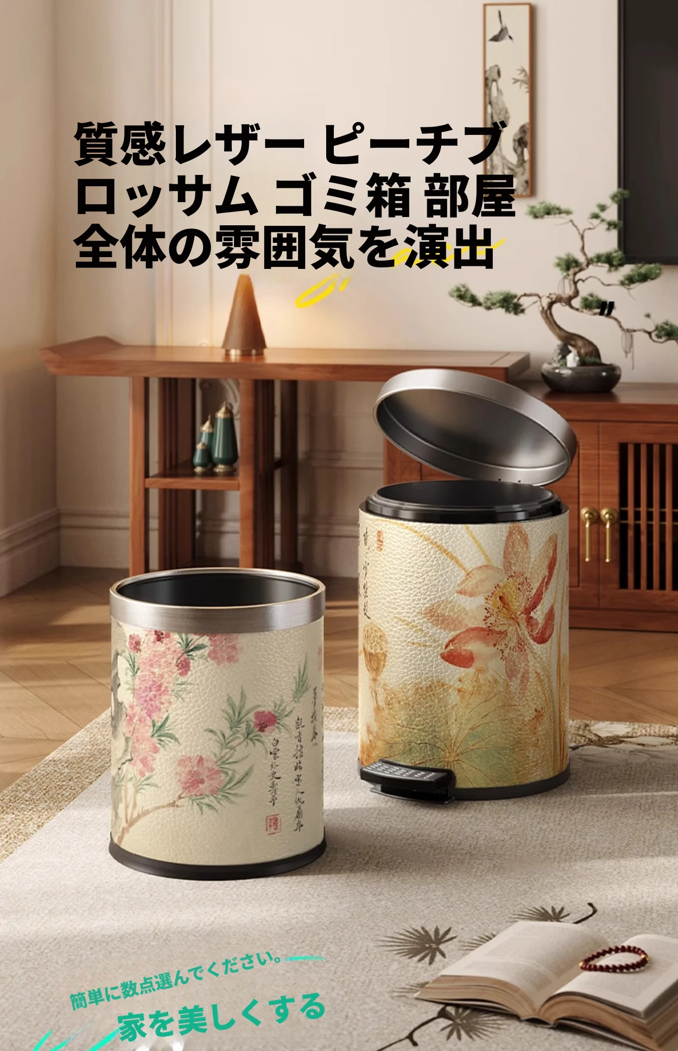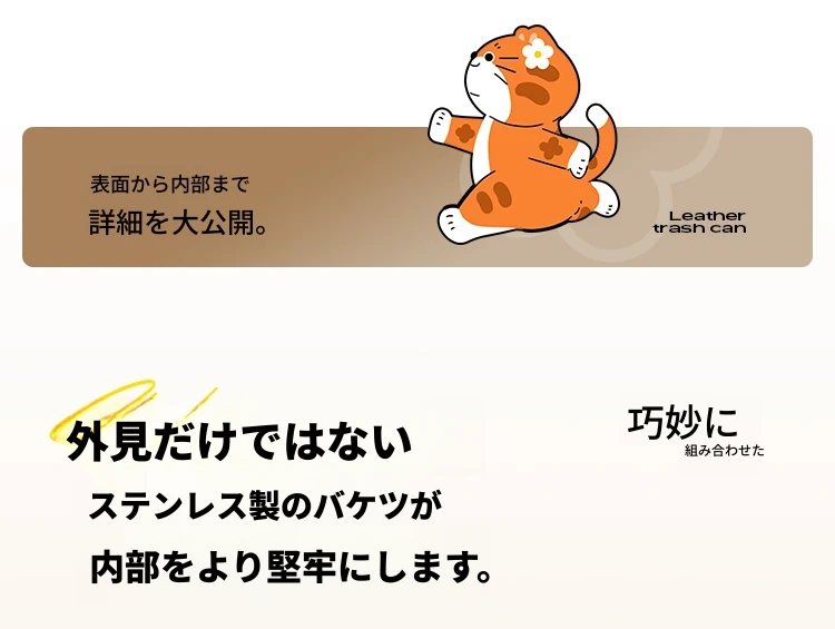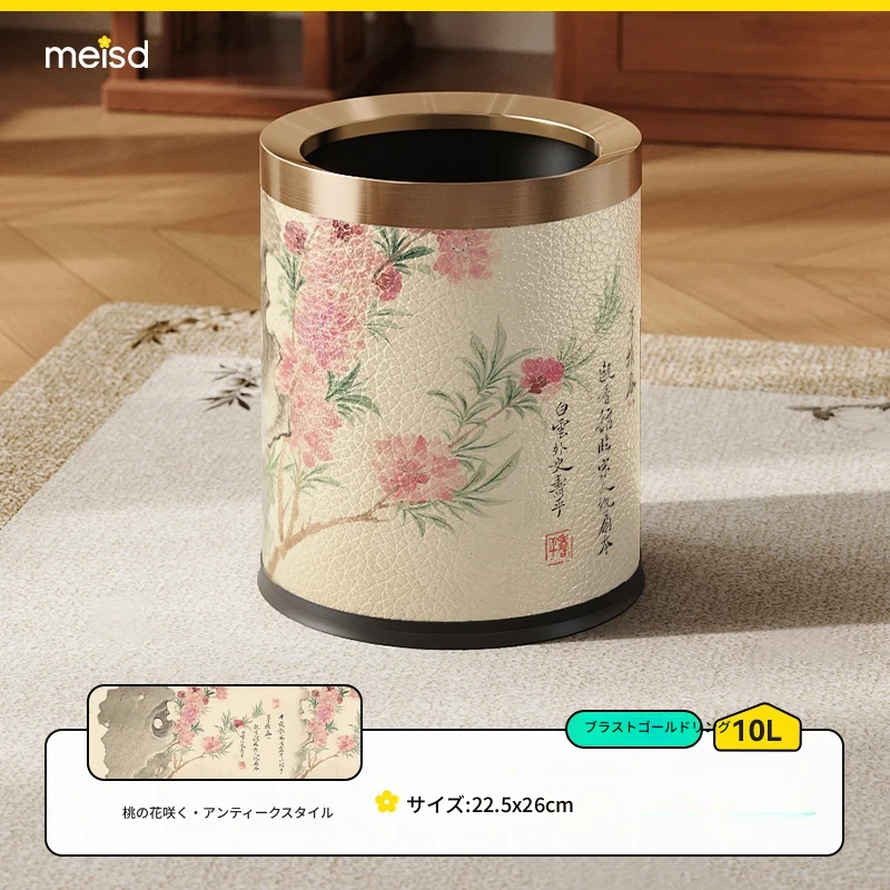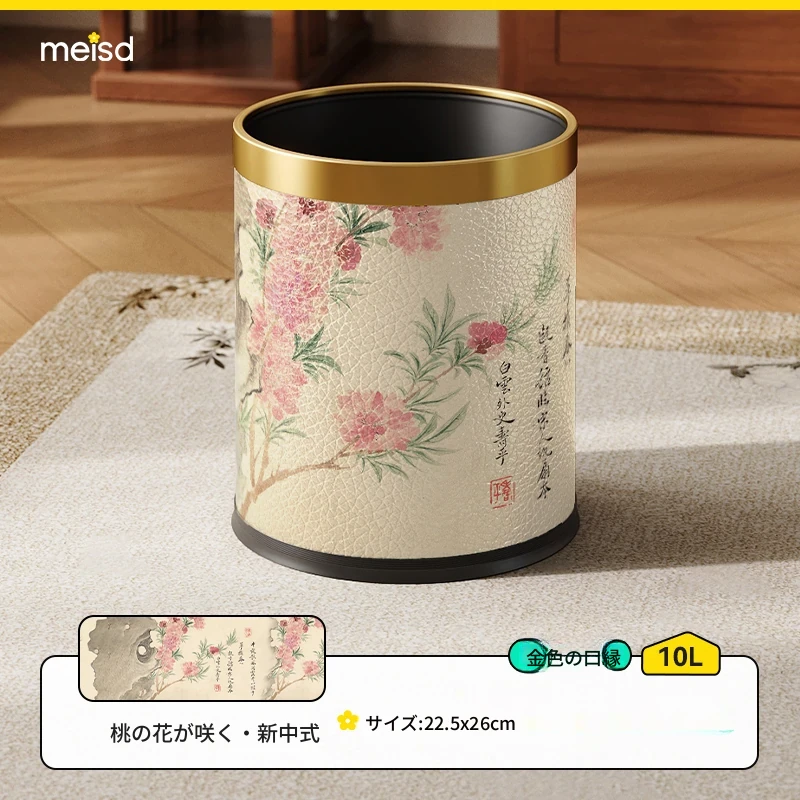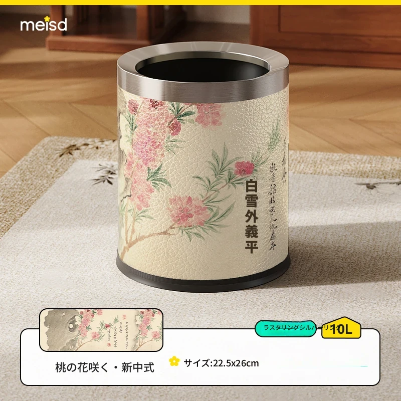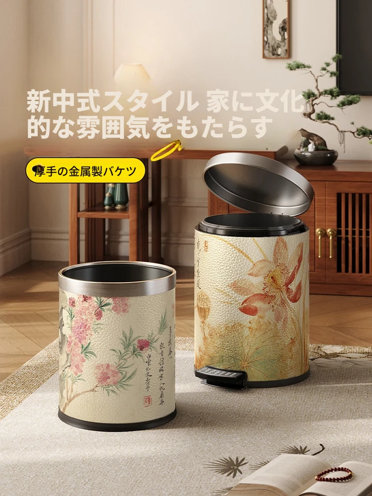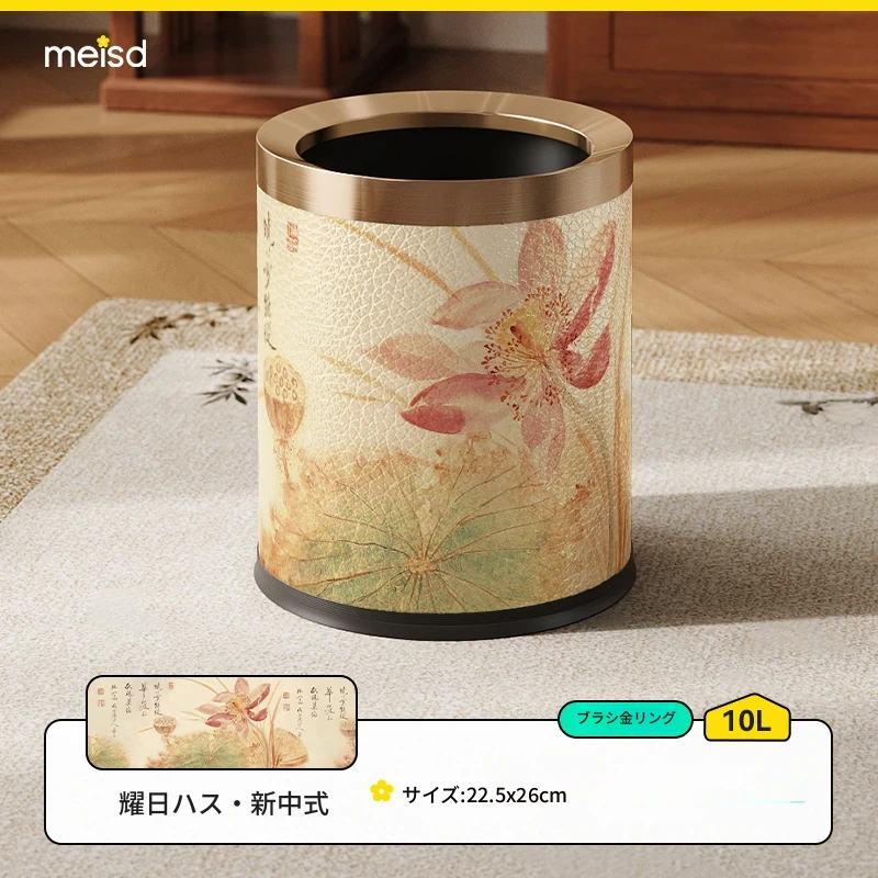 美世达ステンレススチールレザーゴミ箱 - 2025年新作!おしゃれなミッドセンチュリーデザイン、リビングやバスルームに最適な大容量フットペダル式。手間いらずでスタイリッシュな空間を演出!