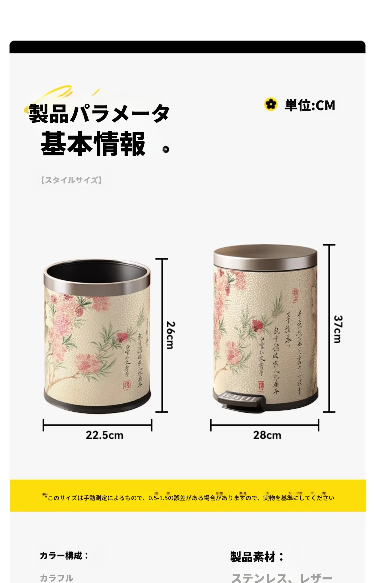 桃花朵朵-A⭐金リングタイプ⭐金属バケツ本体⭐高品質レザー表面