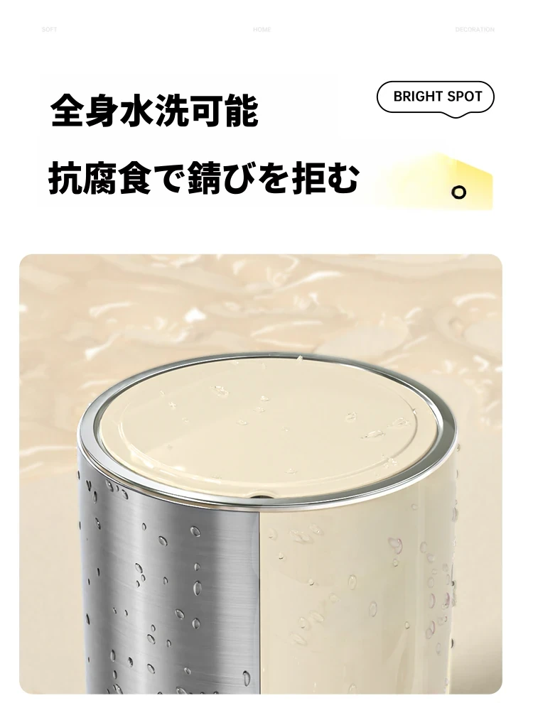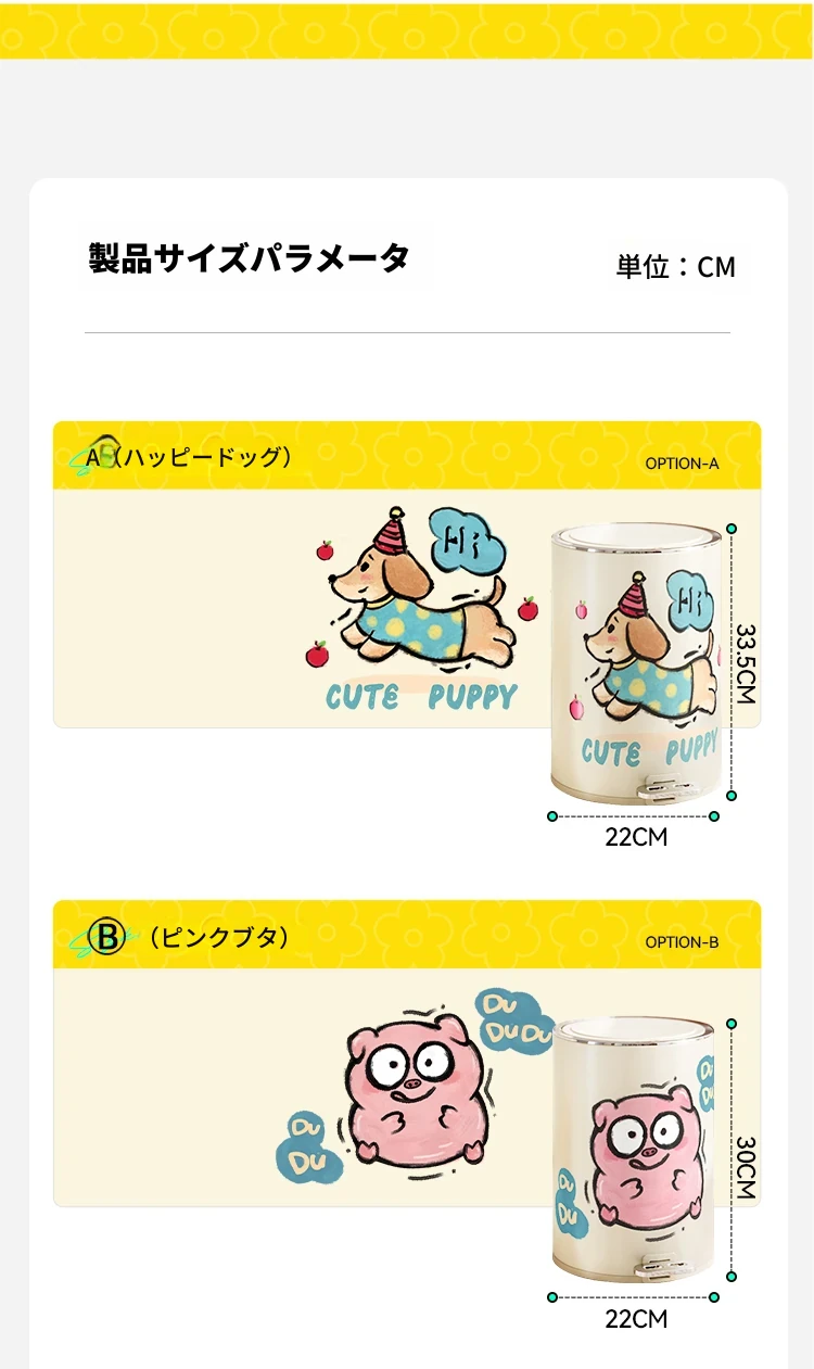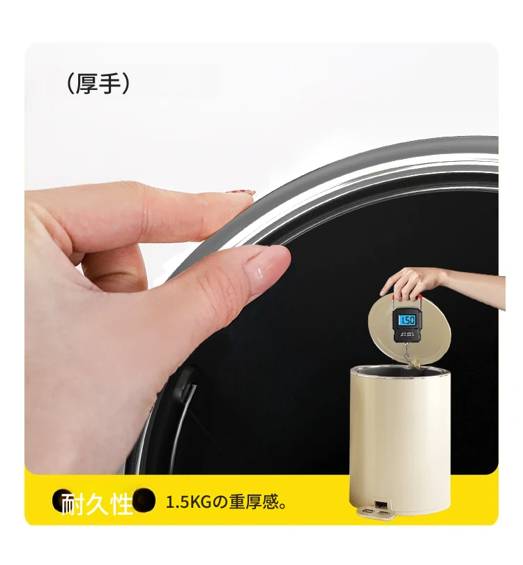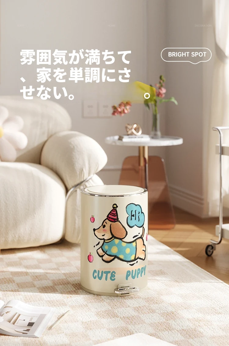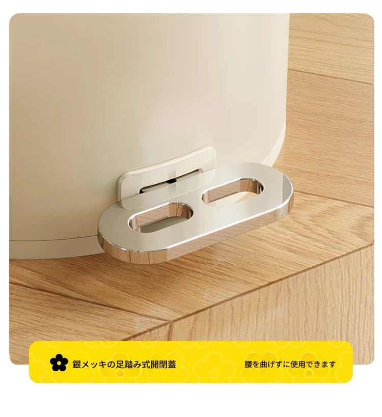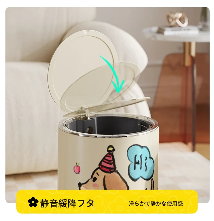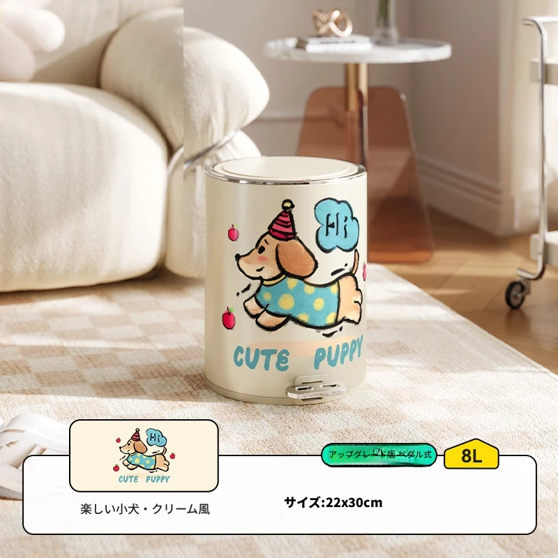 メイシーダ金属製ゴミ箱 - 高級感あふれるカートゥーンデザイン、クリームカラー!リビングや寝室にぴったりの大容量フットペダル式蓋付き。おしゃれで便利な生活アイテム!