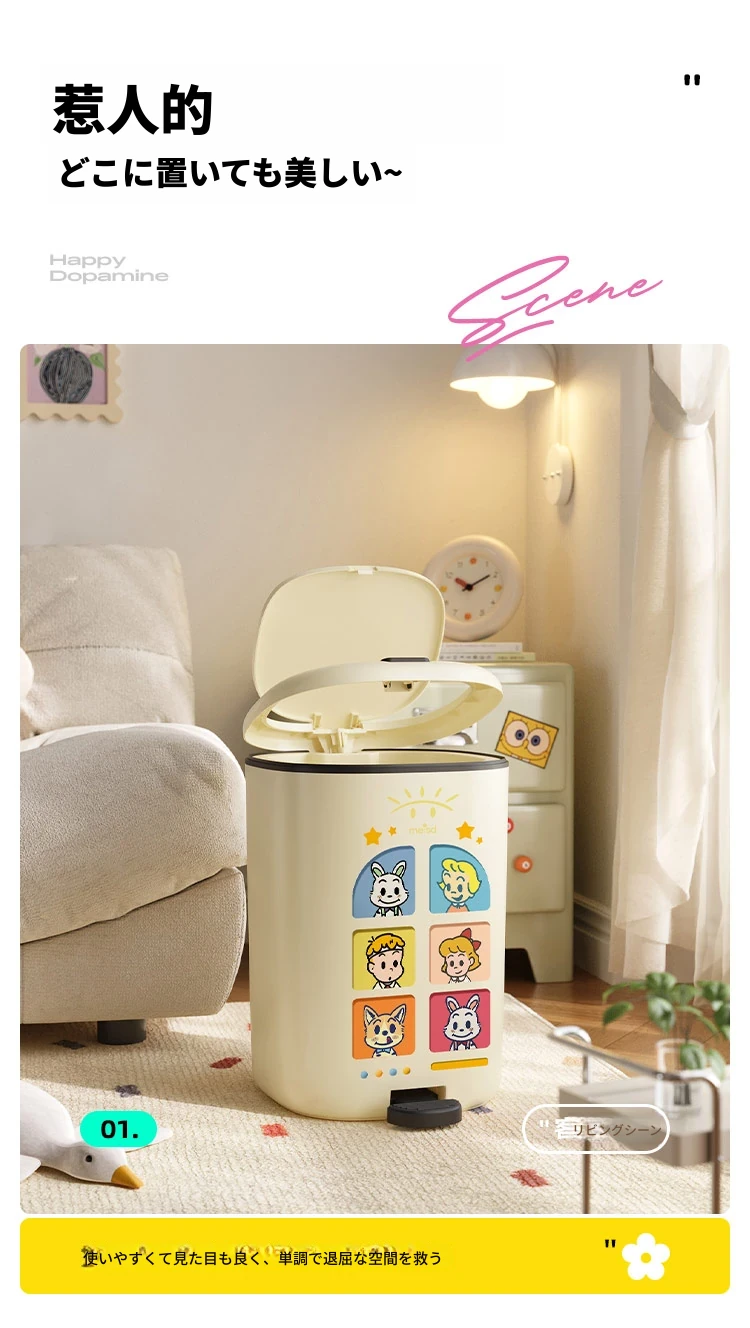 美世达のフタ付きフットペダルゴミ箱 - スタイリッシュなデザインと大容量でリビングに最適!新モデルでおしゃれな生活を演出。