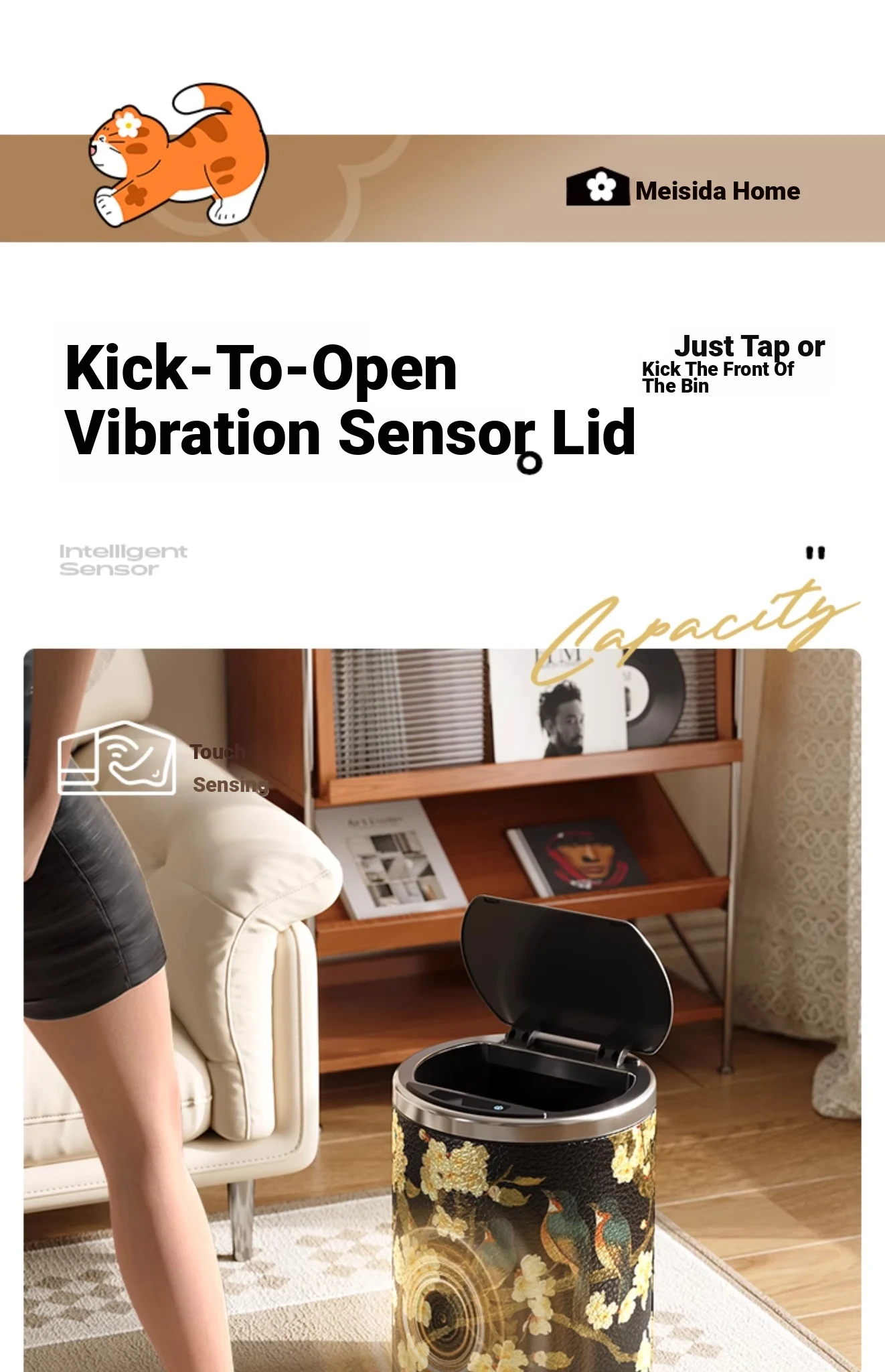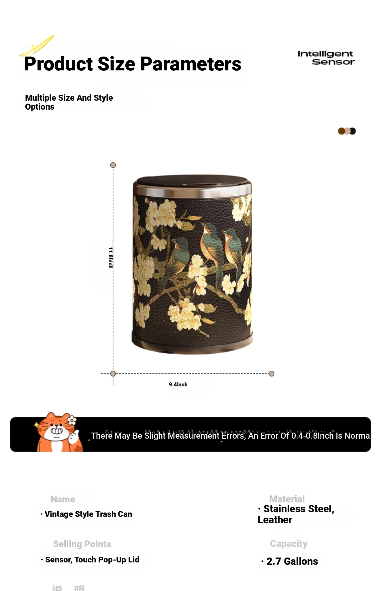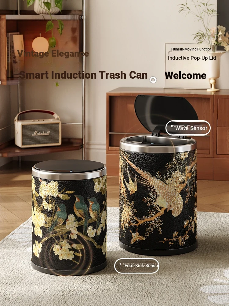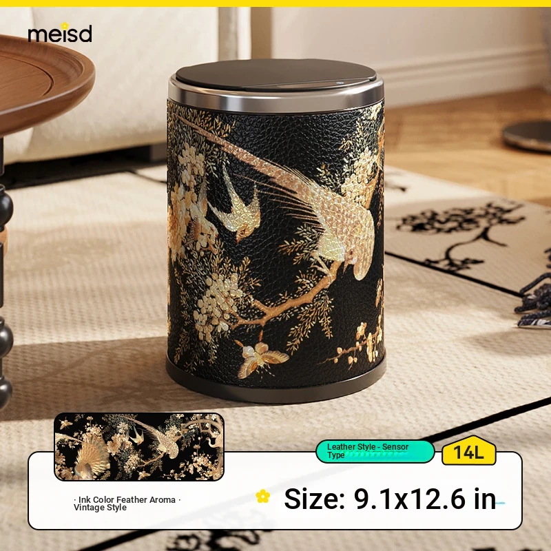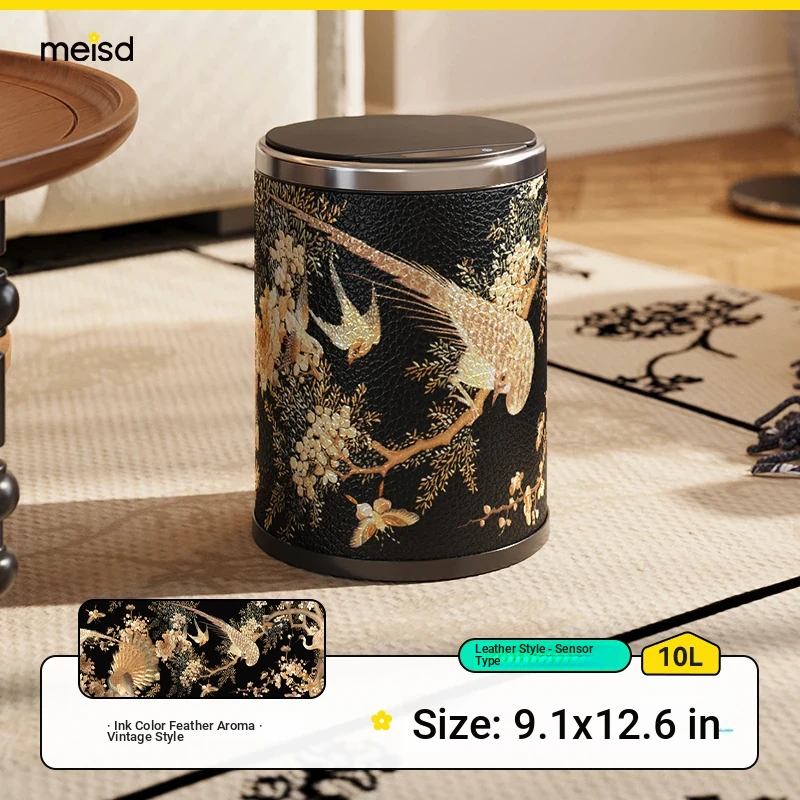 Meisida Vintage-Style Smart Sensor Trash Can - Large Capacity Stainless Steel Household Bin for Living Room and Bedroom - New Arrival