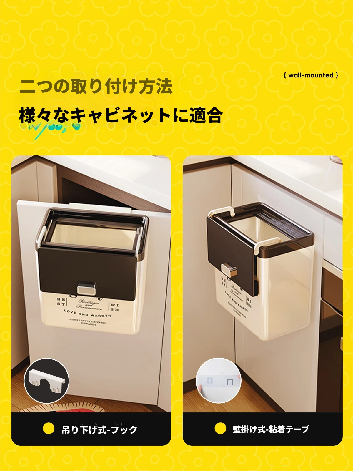 美世达壁掛け式ゴミ箱 - 家庭用シンプル&ラグジュアリー、腰を曲げずに使える!キッチン専用、掛ける・貼る両用の大容量モデル!