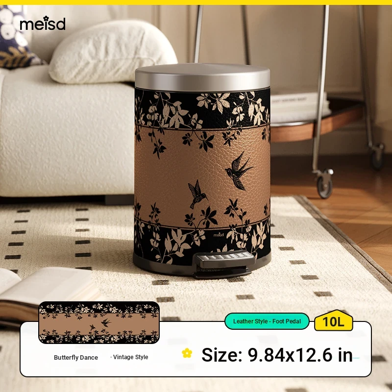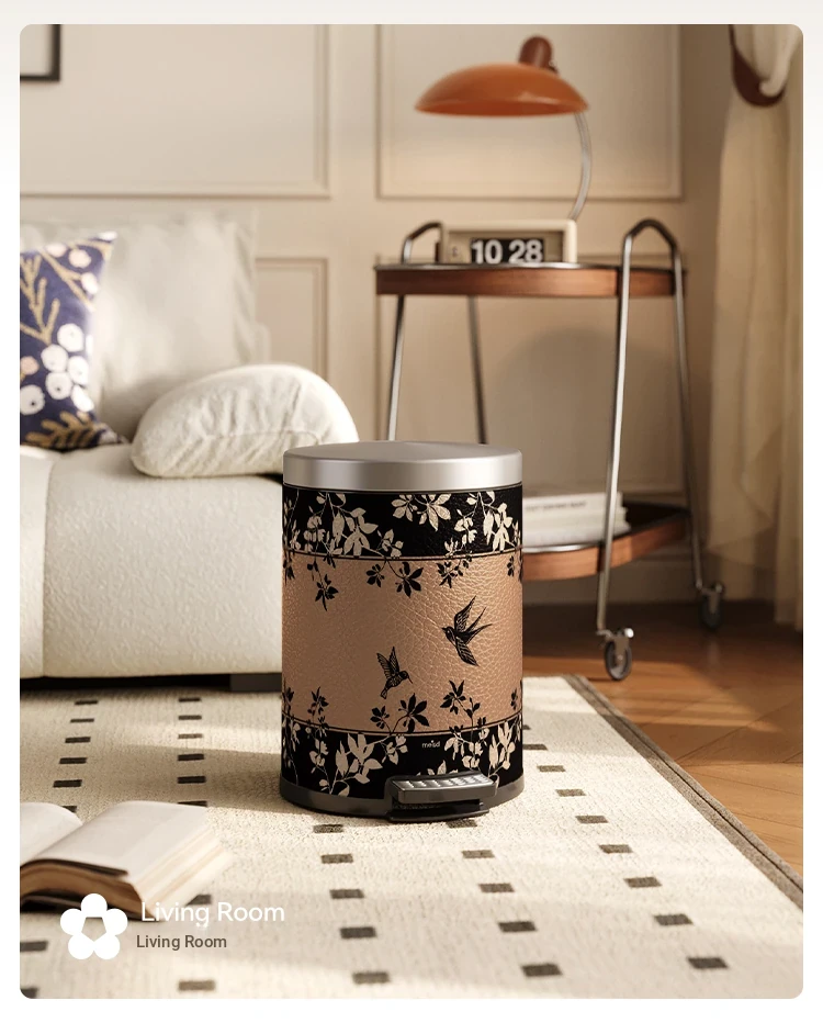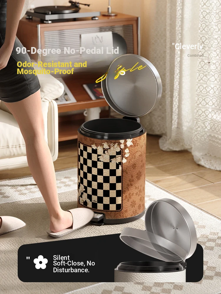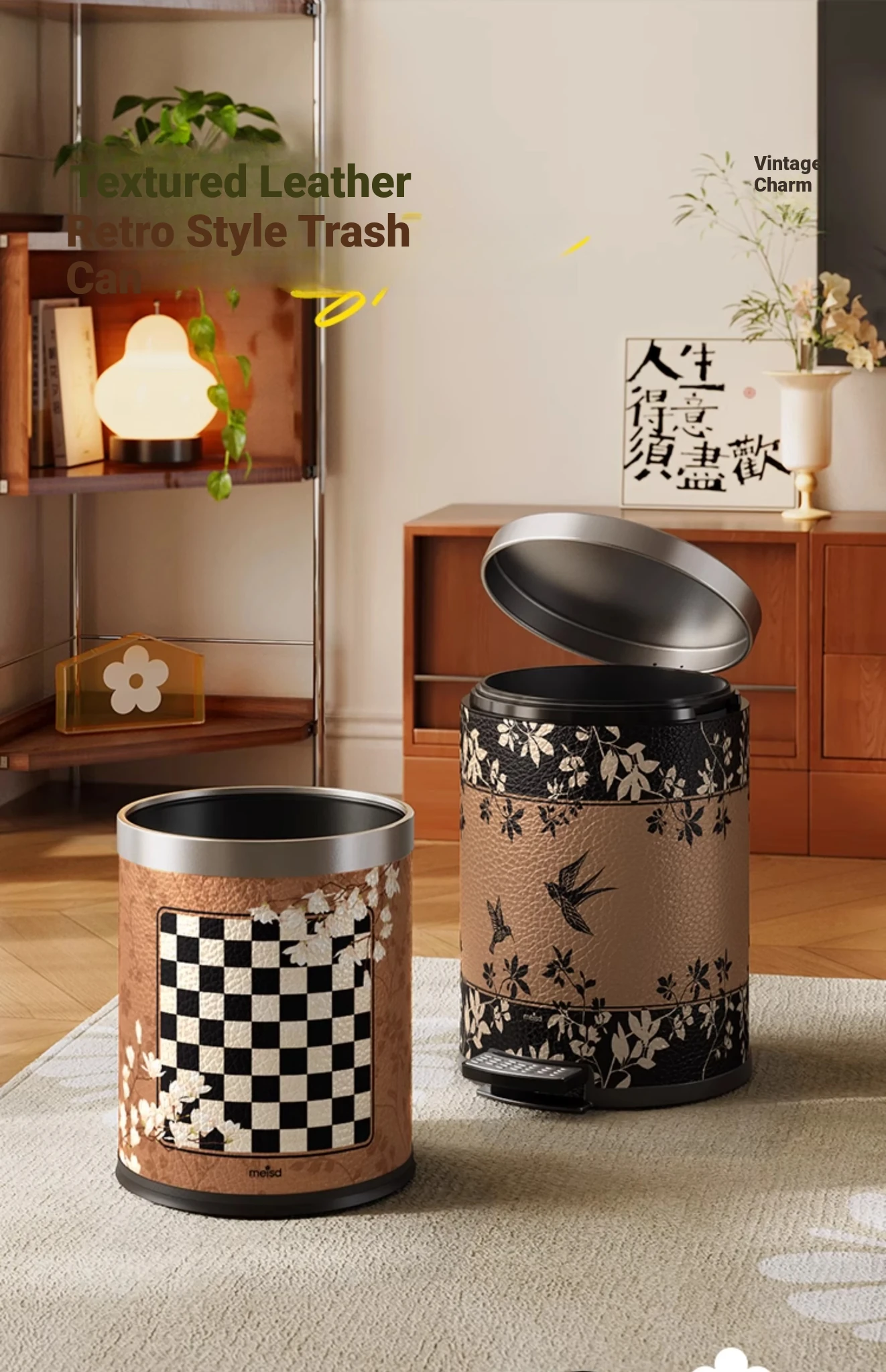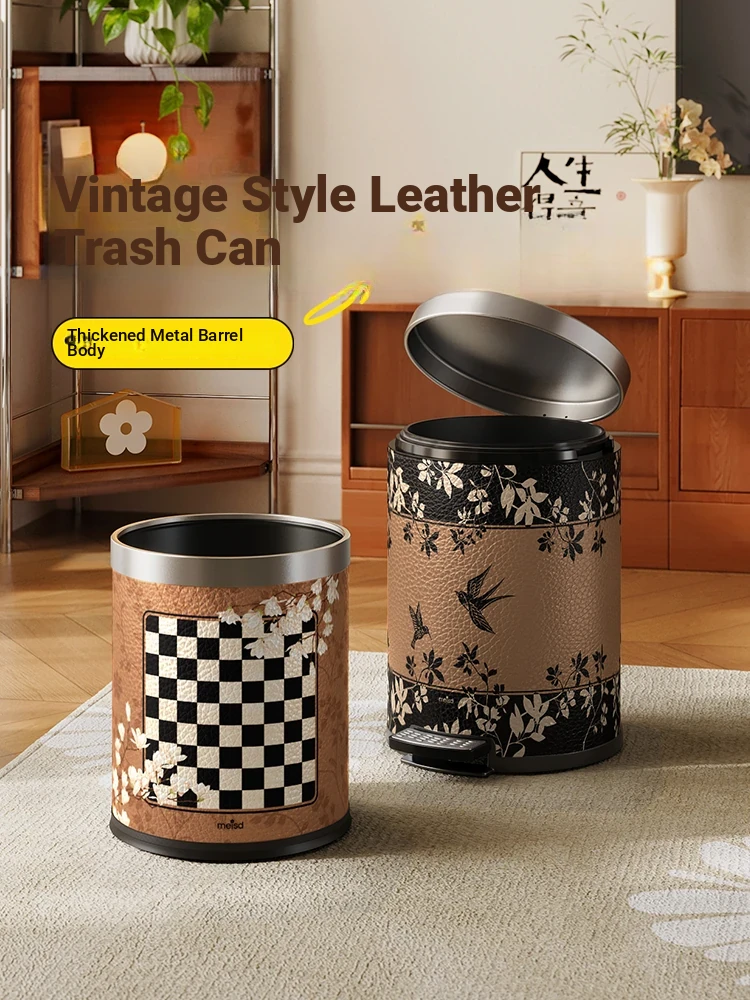 Stylish Metal Foot-Pedal Trash Can with Lid for Home Use – Vintage Design for Living Room and Bedroom, High-Capacity and Attractive!