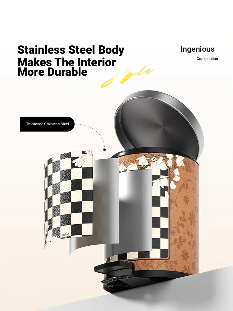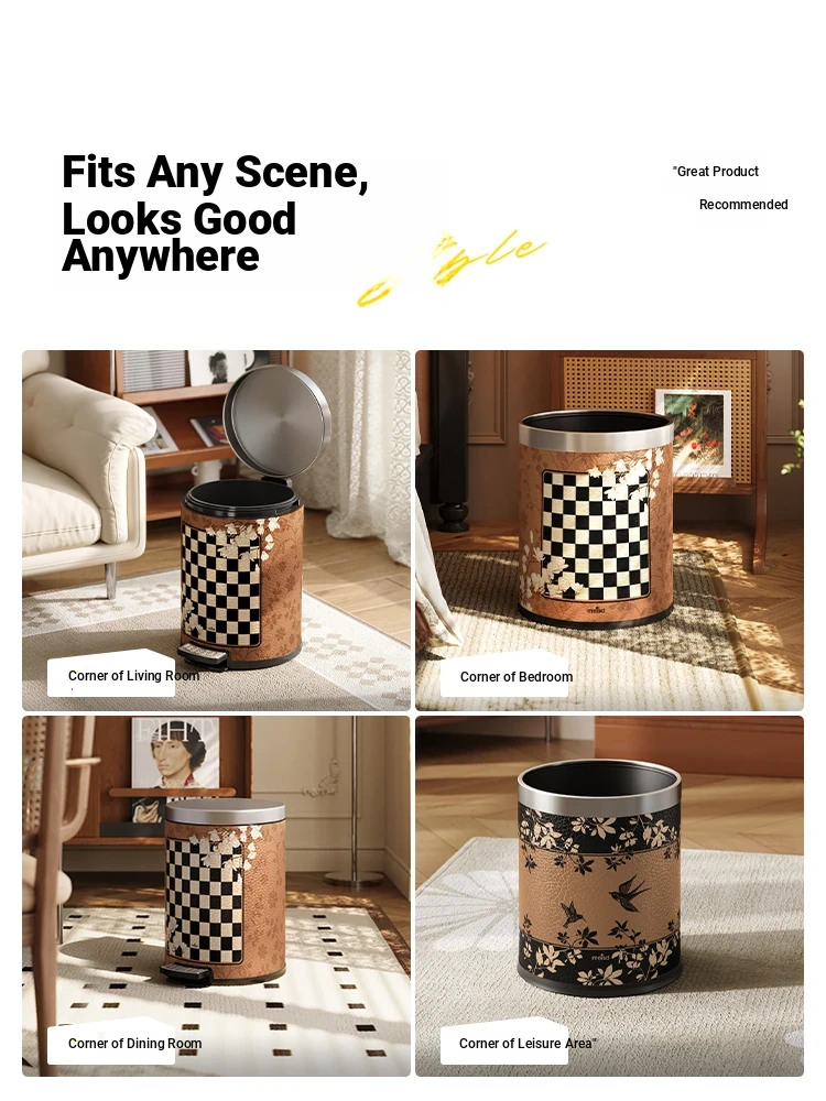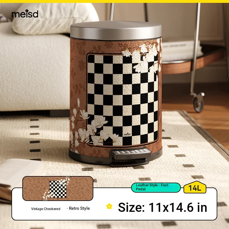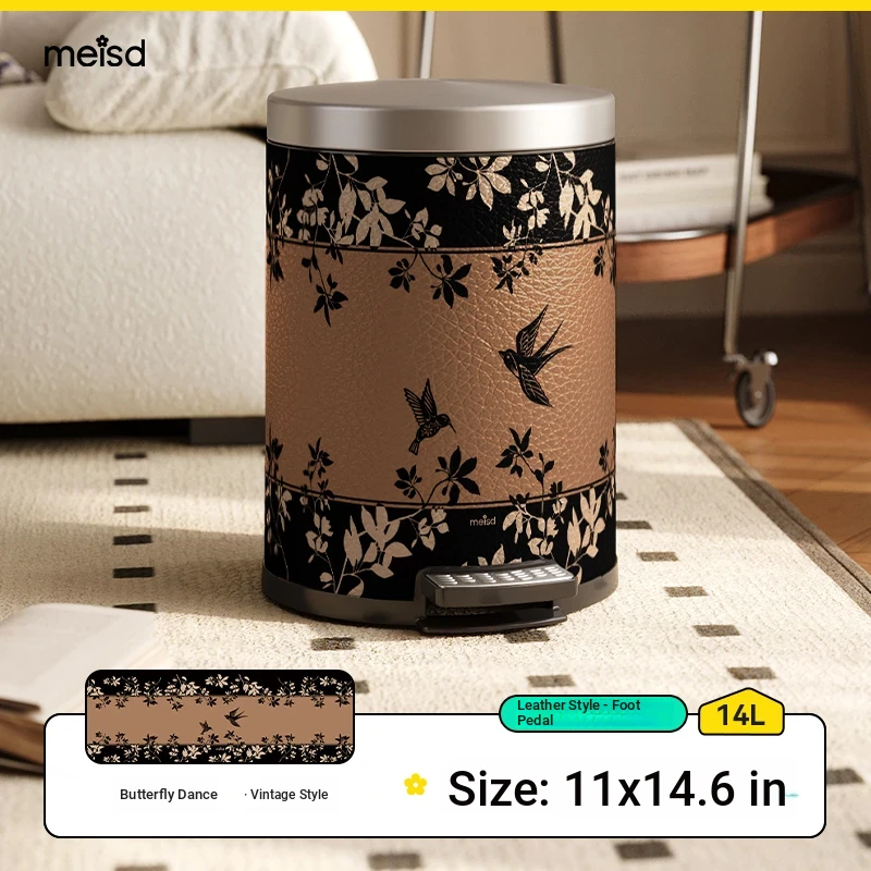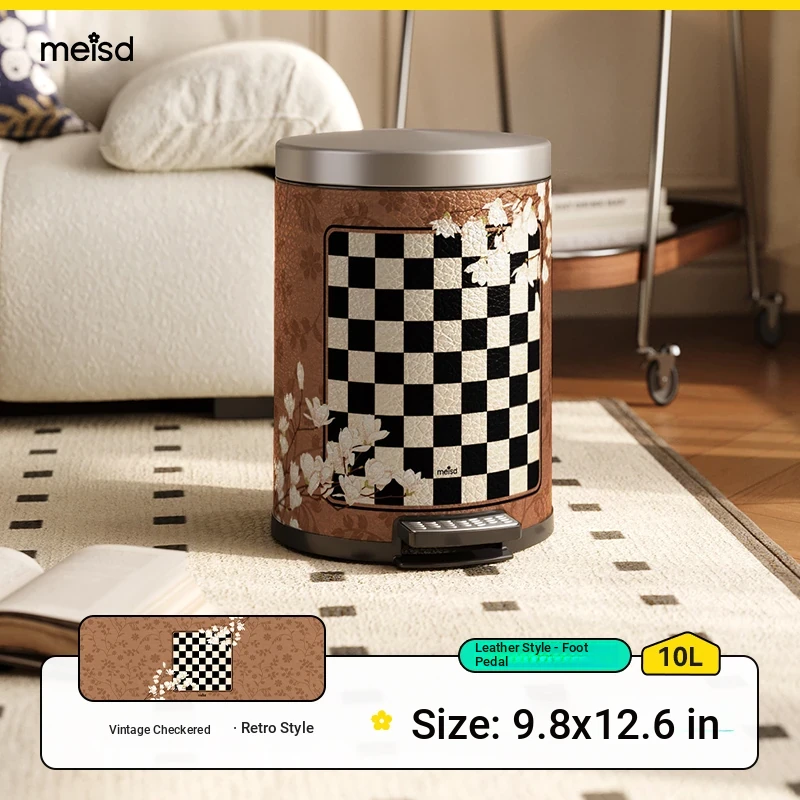 Stylish Metal Foot-Pedal Trash Can with Lid for Home Use – Vintage Design for Living Room and Bedroom, High-Capacity and Attractive!
