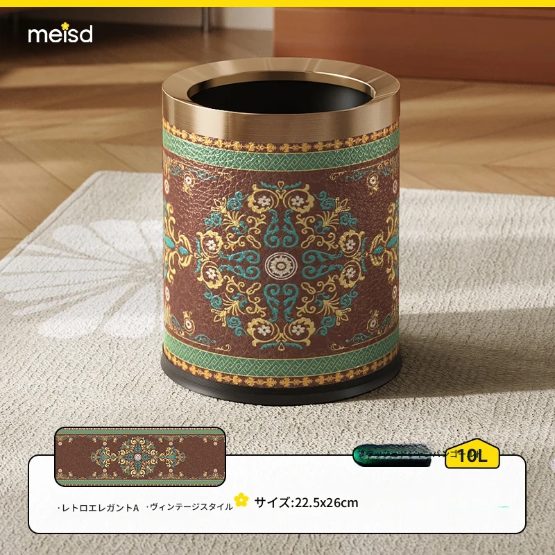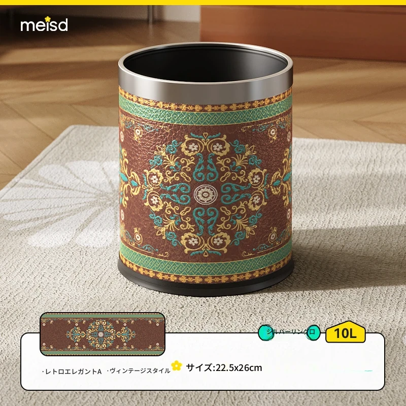 美世达ステンレスレザーゴミ箱|高級感あふれるヴィンテージ風デザイン|家庭用・リビング・バスルームに最適|大容量でスタイリッシュな紙くず入れ