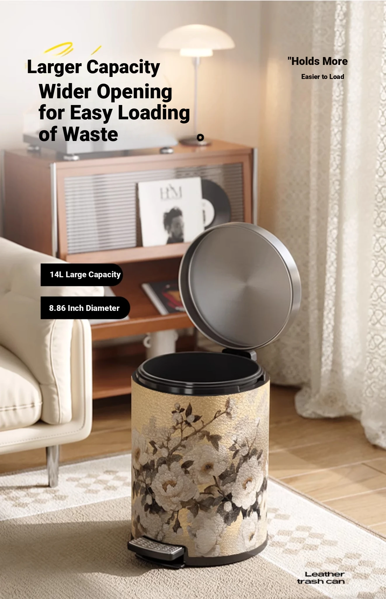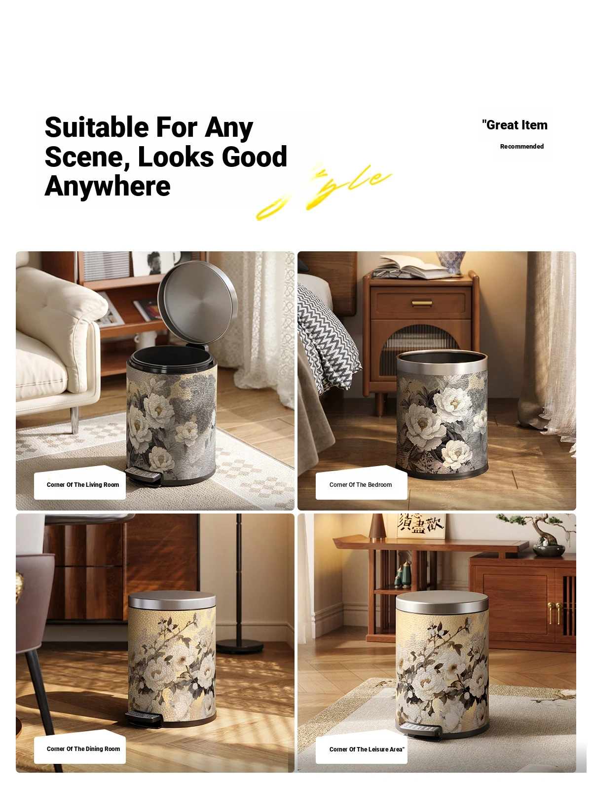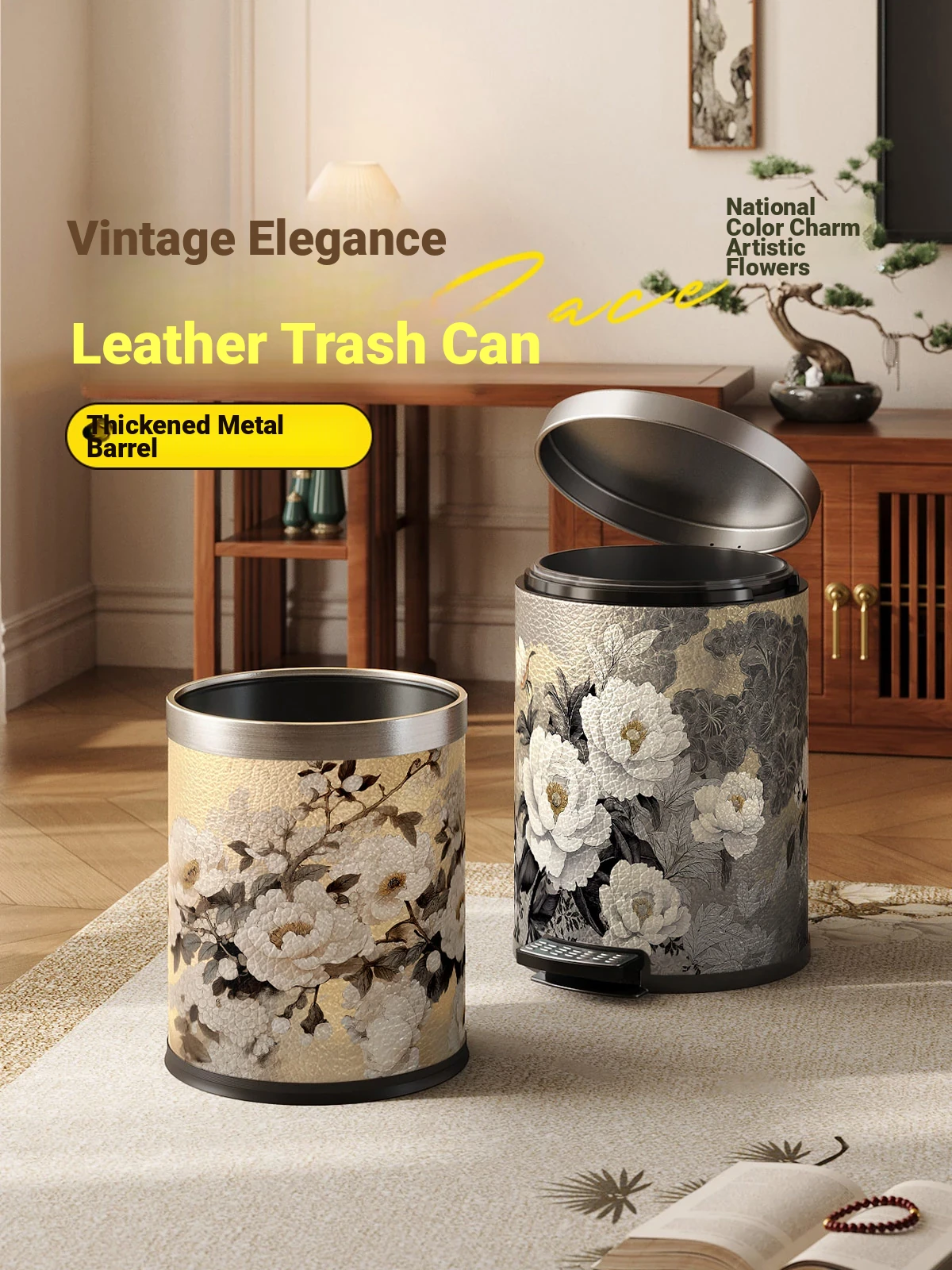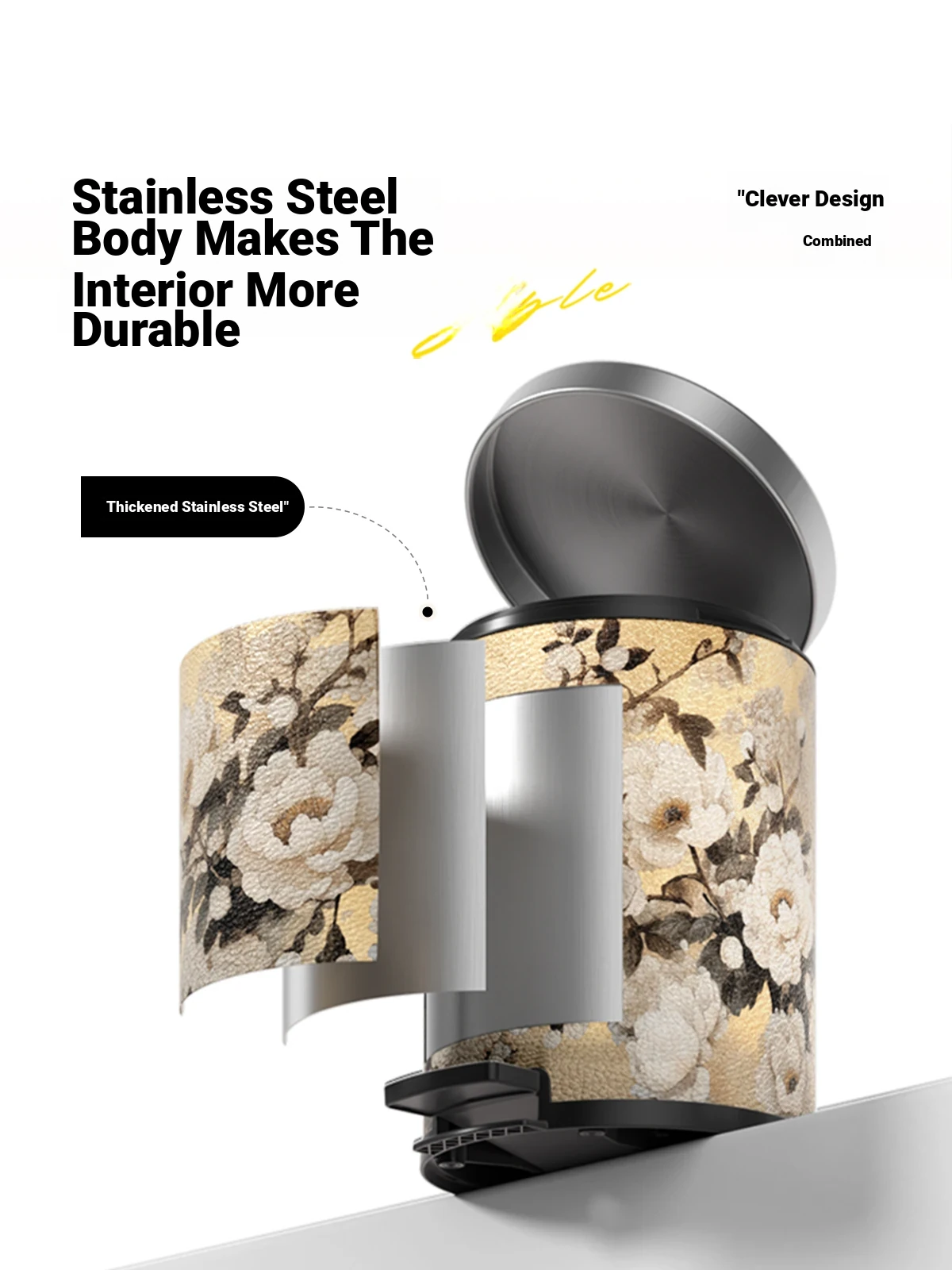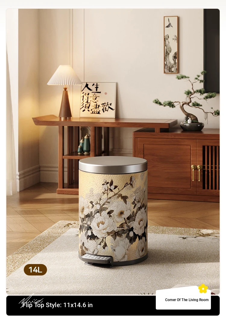Stylish Vintage-Inspired Large Stainless Steel Trash Can for Home, Perfect for Living Room and Bathroom - Elegant Foot Pedal Design, High Aesthetic Appeal