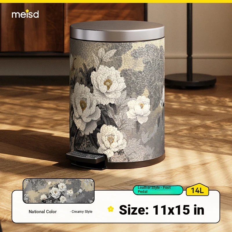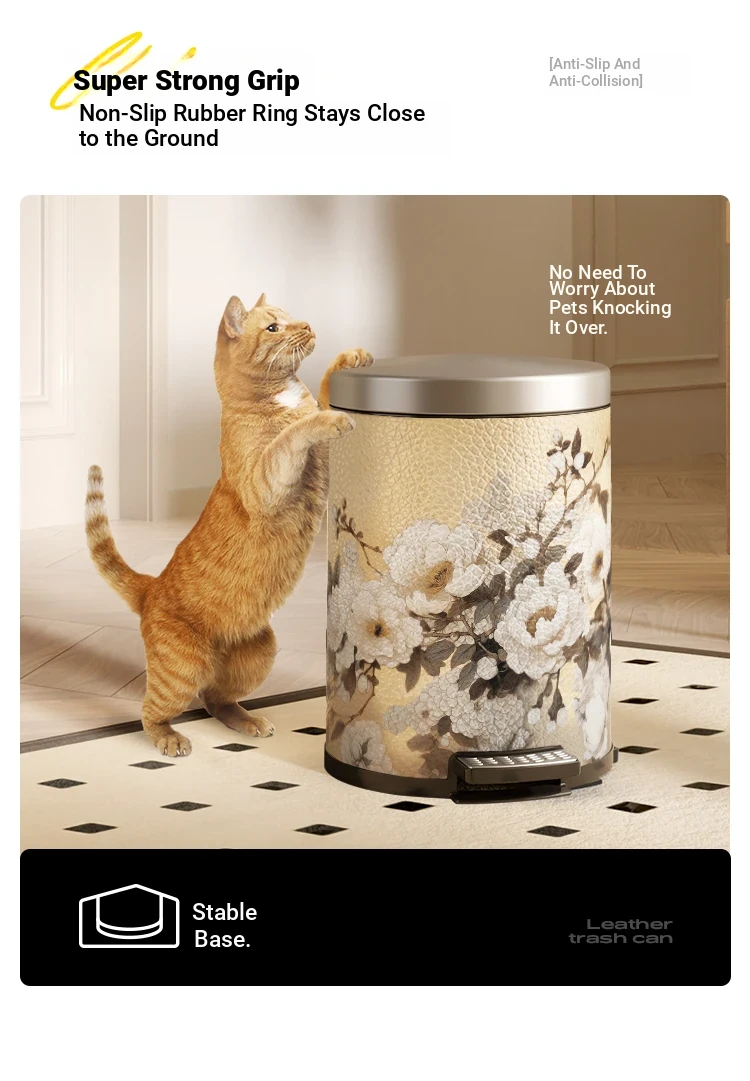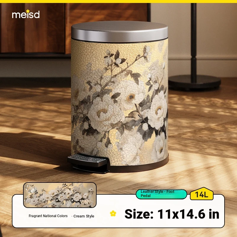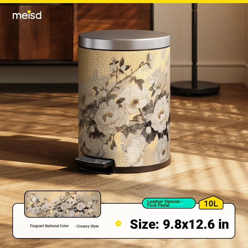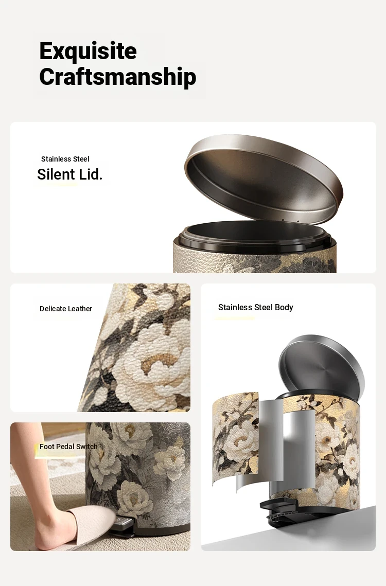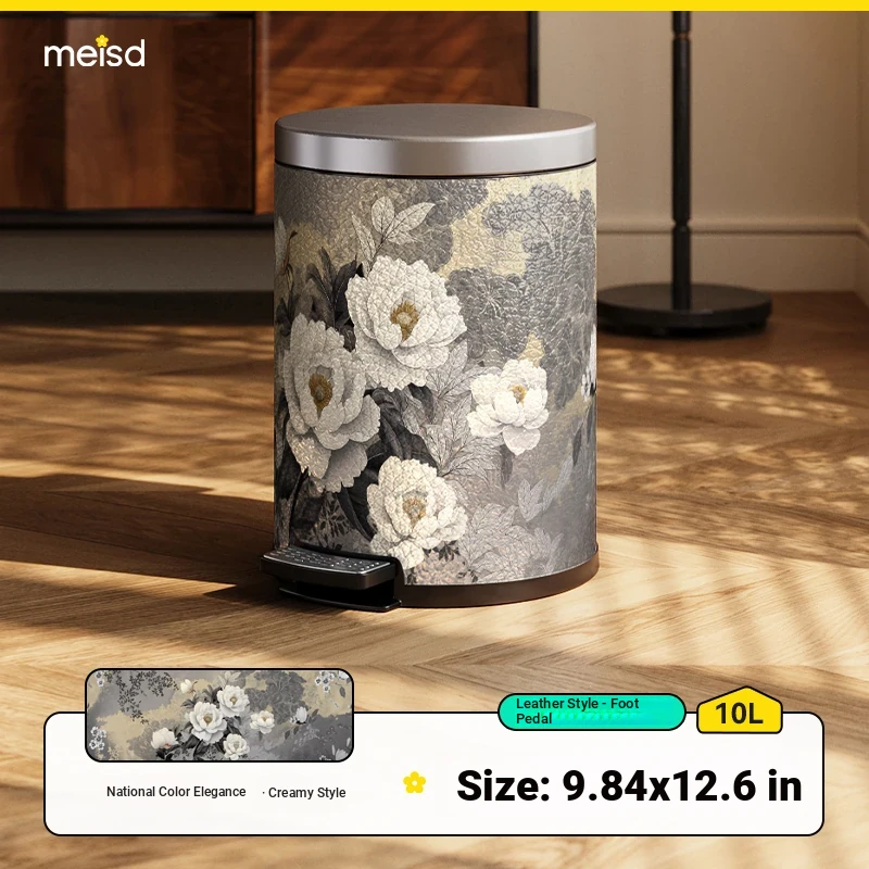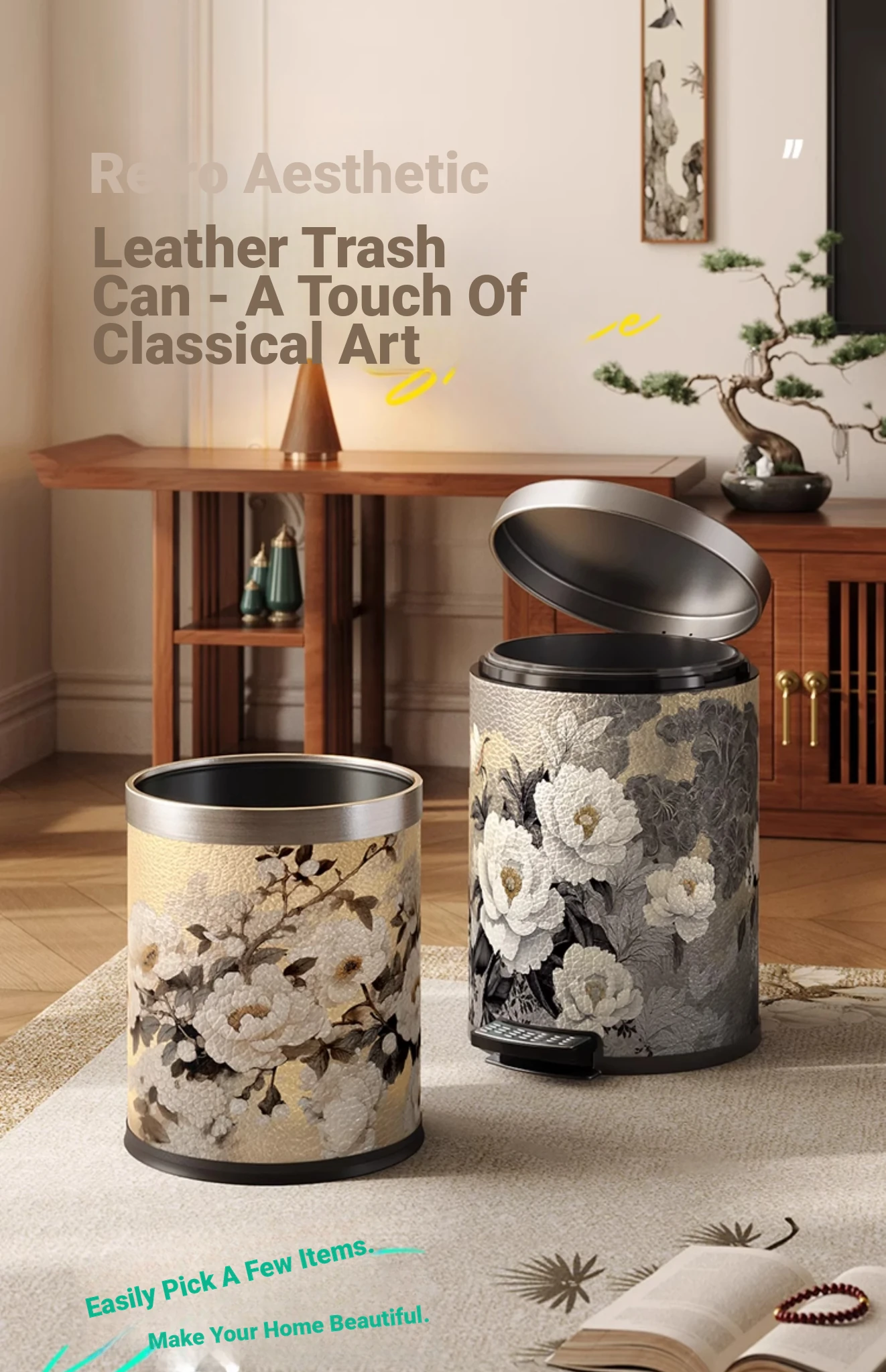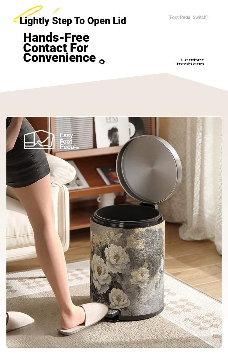 Stylish Vintage-Inspired Large Stainless Steel Trash Can for Home, Perfect for Living Room and Bathroom - Elegant Foot Pedal Design, High Aesthetic Appeal