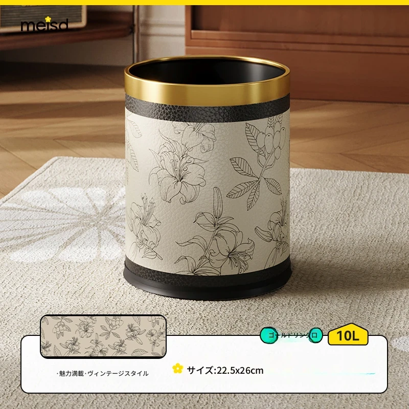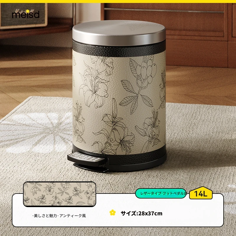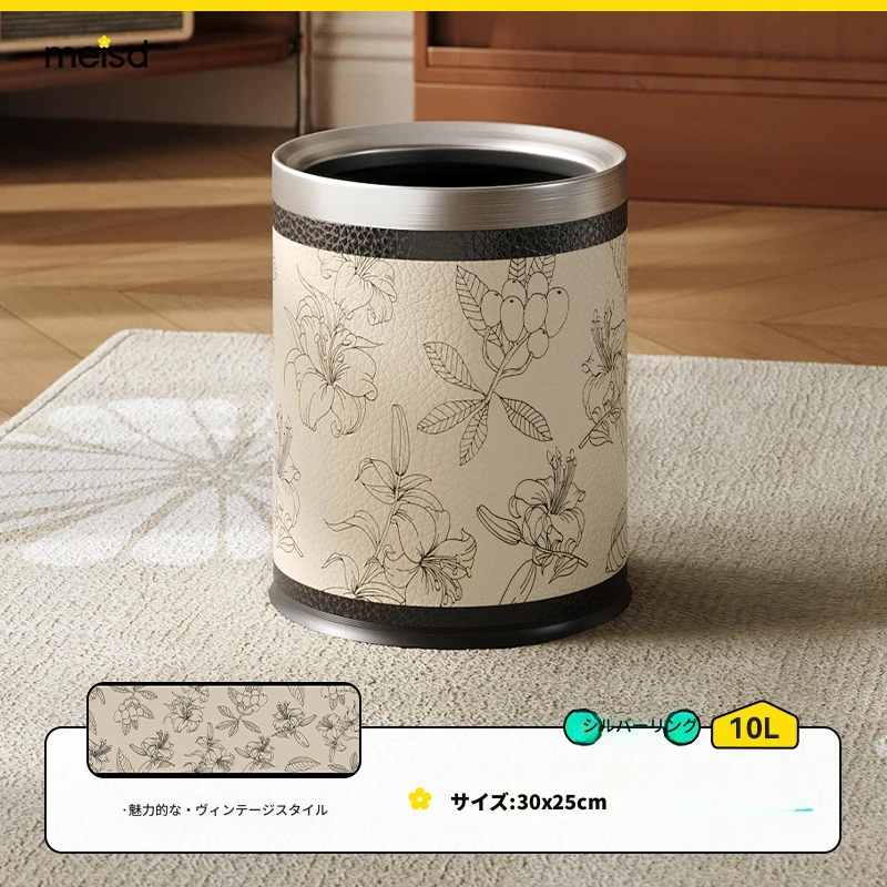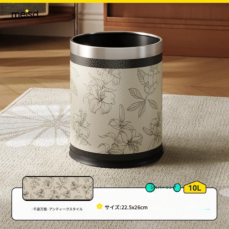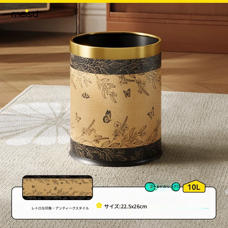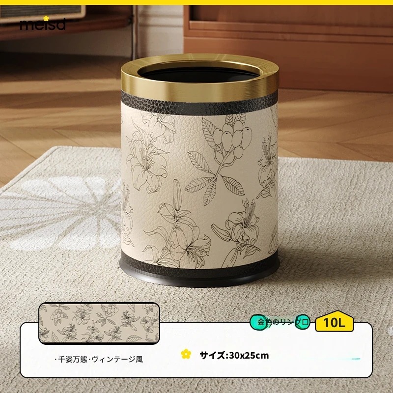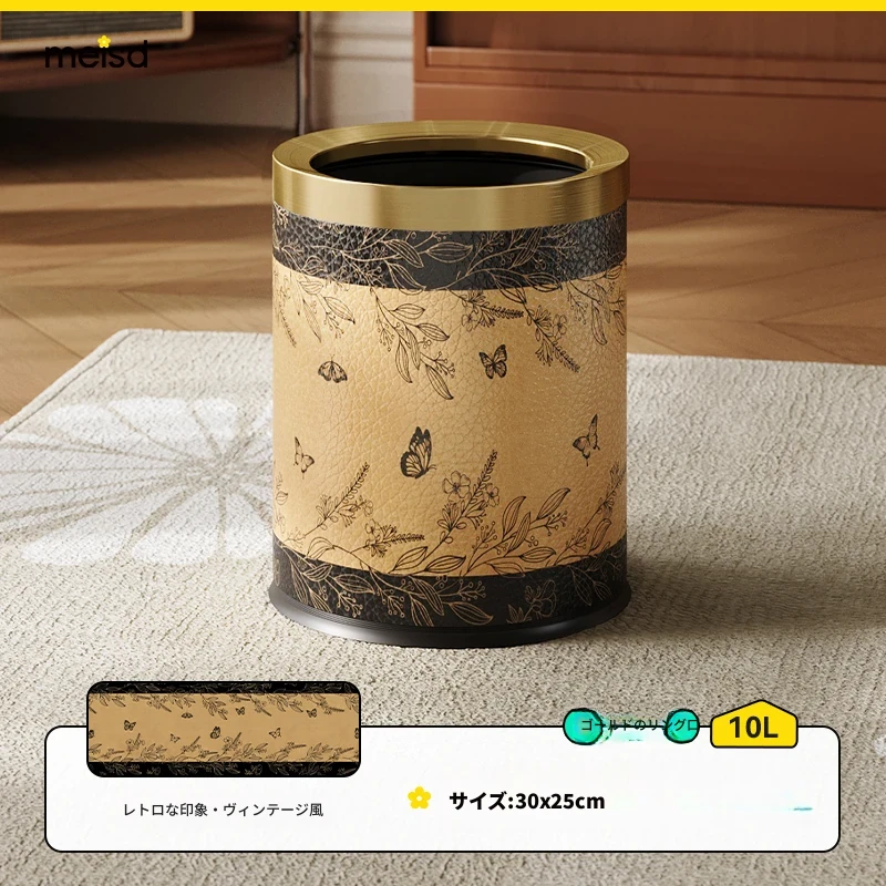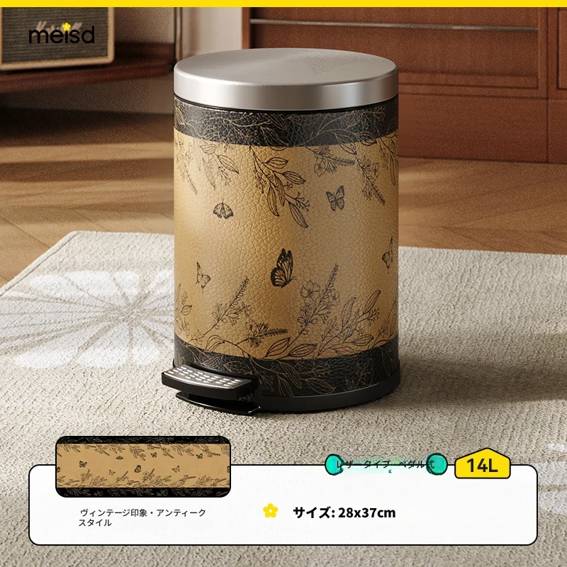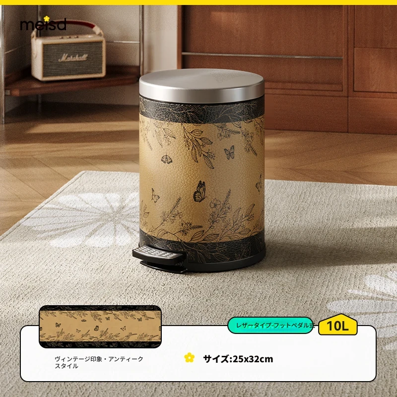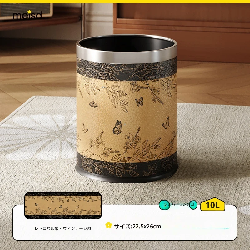 美世达スタイリッシュなステンレス製ゴミ箱 - おしゃれな中古風デザイン、2025年新モデルの高級ライトラグジュアリー大容量家庭用衛生ゴミ箱!