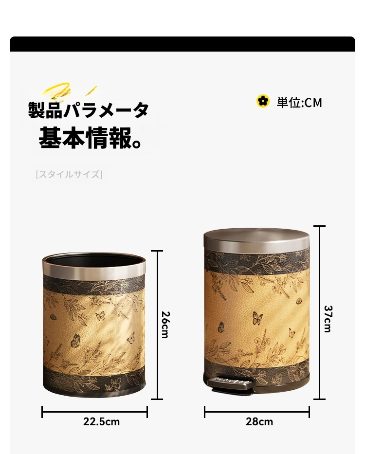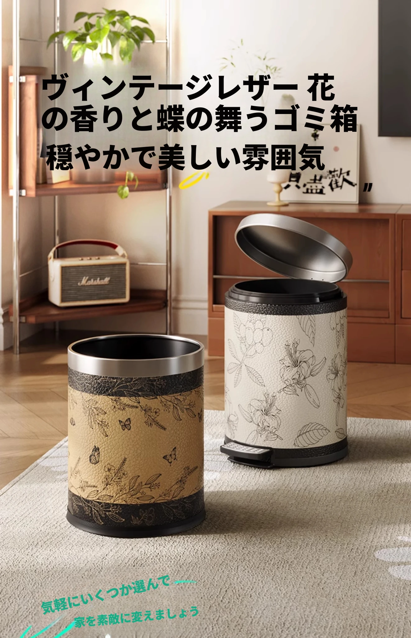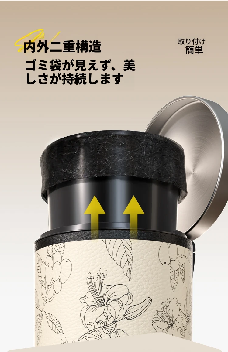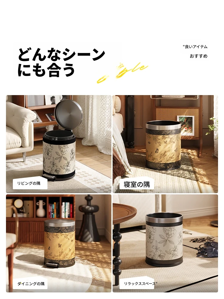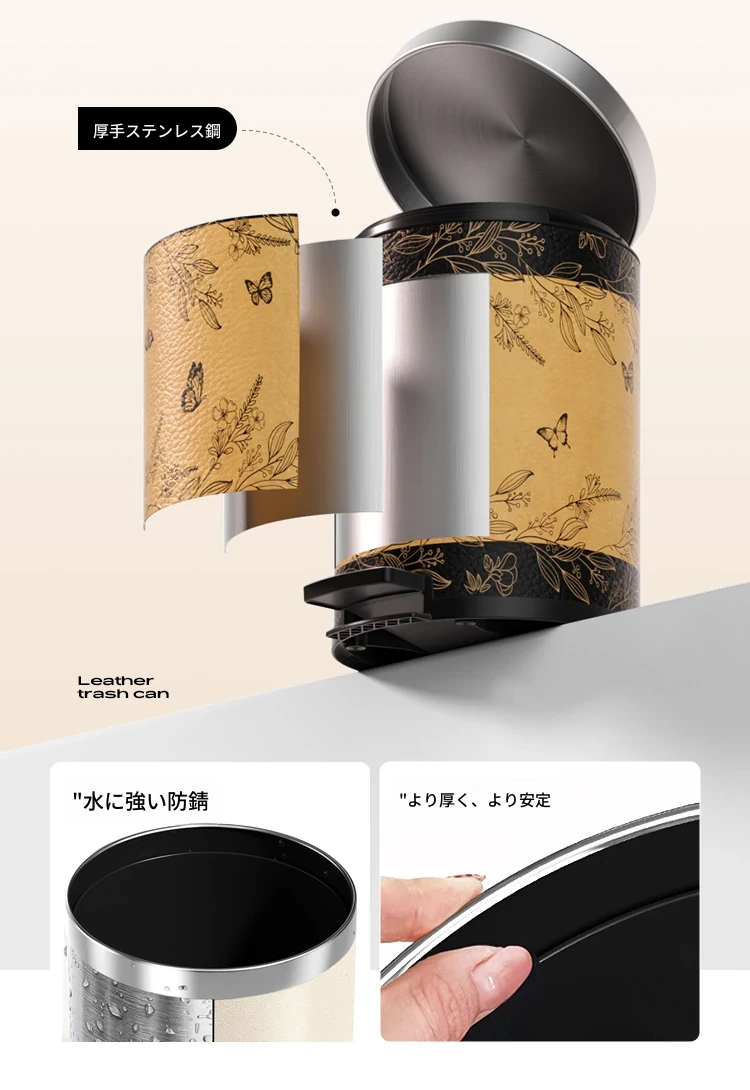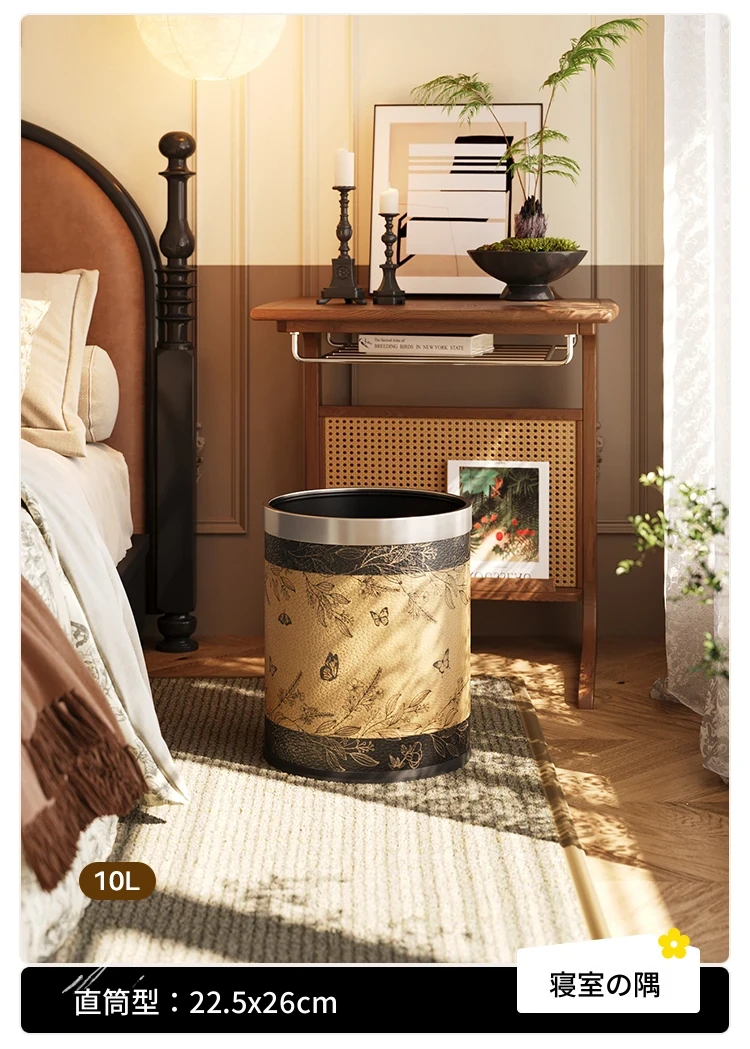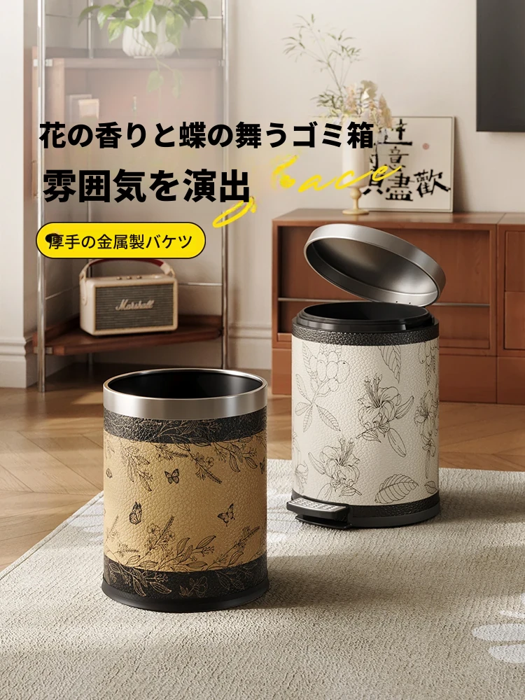 美世达スタイリッシュなステンレス製ゴミ箱 - おしゃれな中古風デザイン、2025年新モデルの高級ライトラグジュアリー大容量家庭用衛生ゴミ箱!