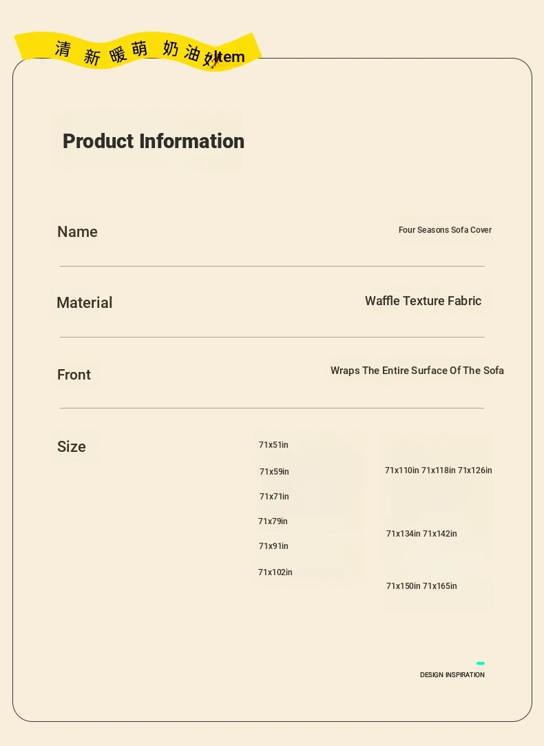 [No armrest sofa] suggested size [sofa length +50~31.50in]]