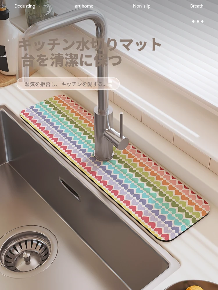 美世达キッチン用吸水マット - 2024年新作!滑り止め機能付きで、シンクやカウンターをしっかりサポート。水分を素早く吸収し、清潔で快適なキッチン環境を実現します。