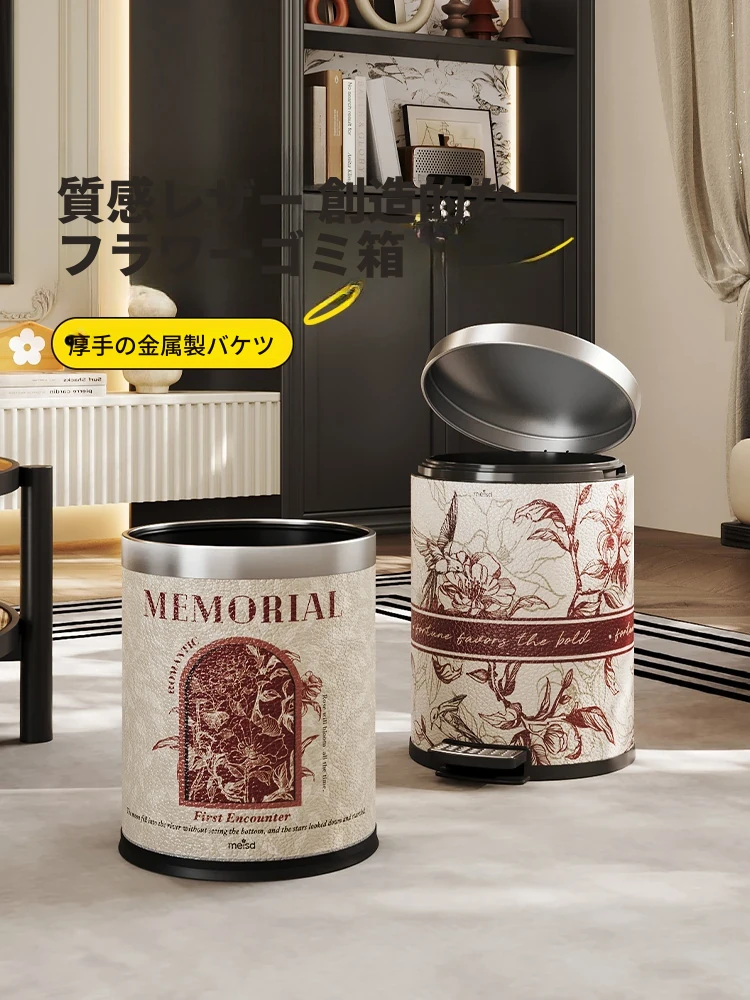美世达 ステンレス製レザーゴミ箱 おしゃれなヴィンテージ風 家庭用リビングにぴったり!軽やかなラグジュアリー感と可愛いキャラクターのフットペダル付きで、インテリアに華を添えます。