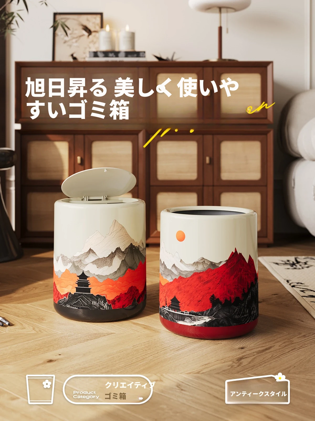 美世达のゴミ箱 - おしゃれで高品質、2025年新作!モダンな和風デザイン、家庭用バスルームにぴったりな大容量タイプ、清潔感あふれる旭日昇るスタイル。あなたの空間を美しく演出します!