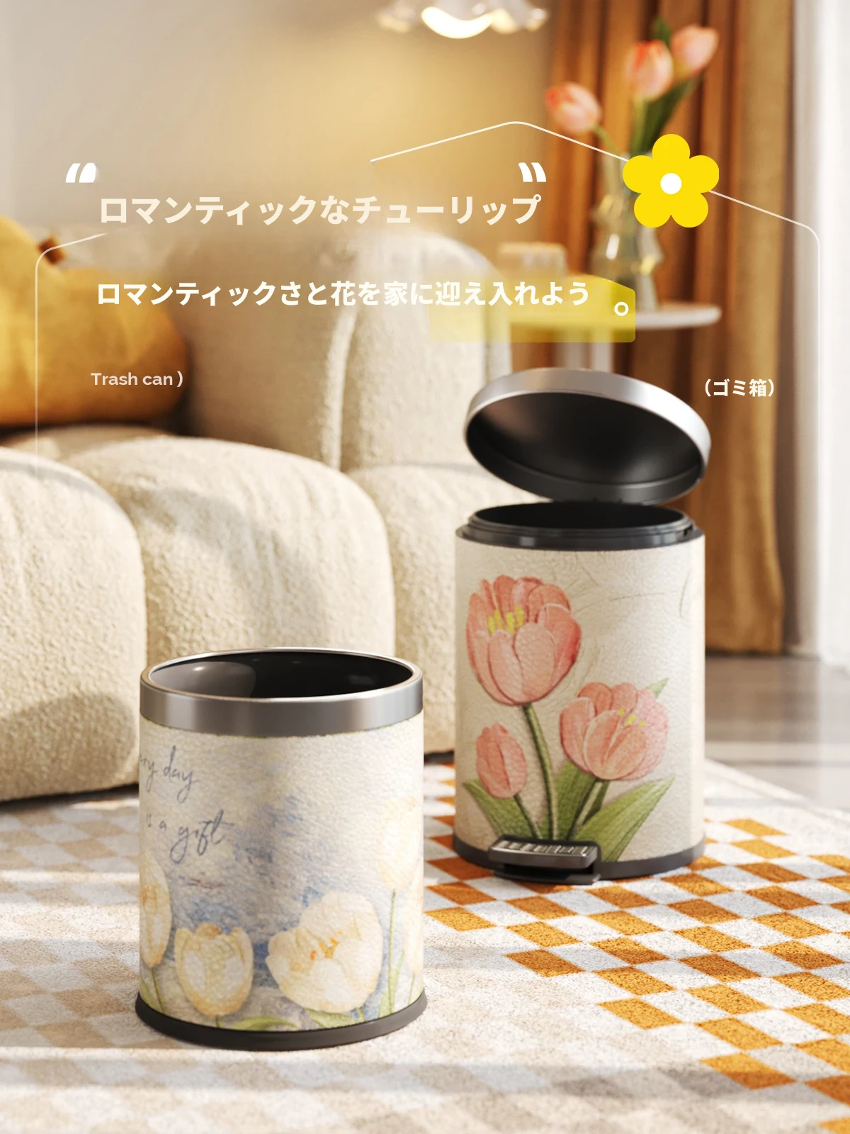 美世达スタイリッシュ大容量ゴミ箱 - シンプルなイラストデザインでリビングや寝室にぴったり!二重構造で蓋付き、見た目も機能性も兼ね備えた理想のゴミ箱です。